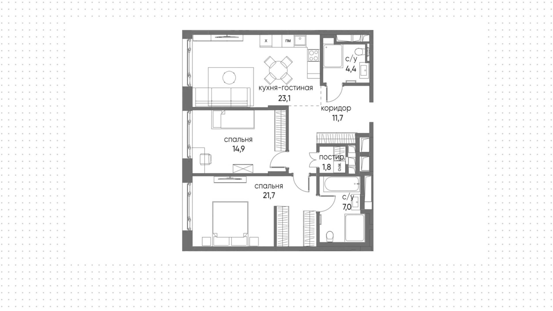 Квартиры c 2 спальнями, 86 м² в ЖК Остров, 4 этаж