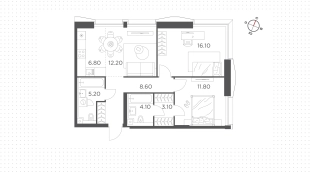 Цена квадратного метра стартует от 340 000 рублей. Стоимость квартир начинается от 11 510 000 рублей за студии и от 30 360 000 рублей за варианты с 3 спальнями.