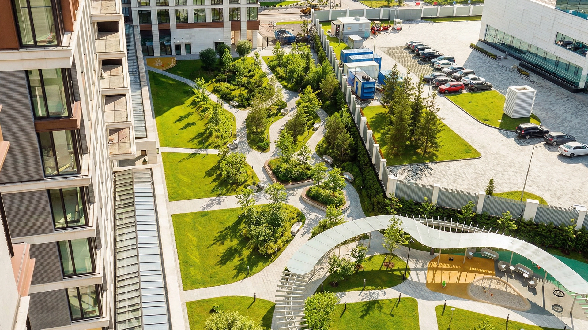 Настоящее единение с природой: на территории разбит приватный двор-парк. За пределами – заповедник «Серебряный бор» с пляжем и соснами. Квартиры на любой вкус: двухуровневые, с дровяным камином или собственной террасой.