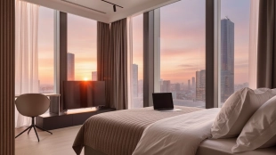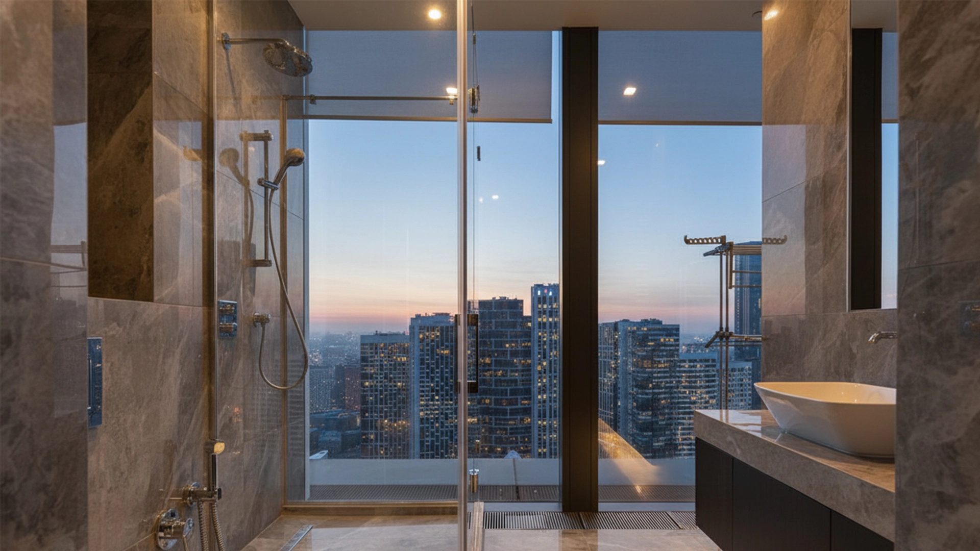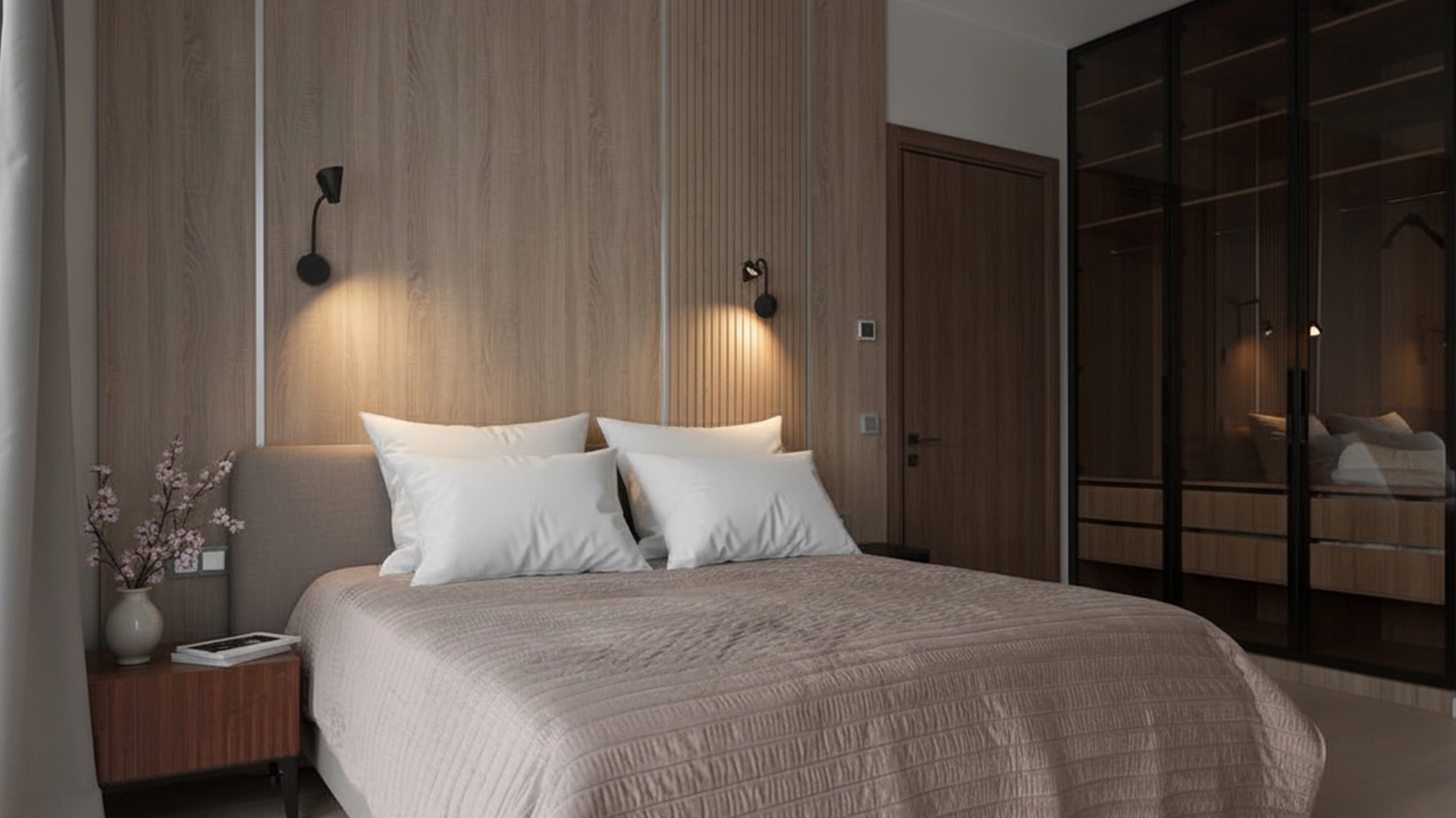 Апартаменты с 1 спальней общей площадью 80 м² в комплексе небоскрёбов премиум-класса Neva Towers. Апартаменты расположены на 28 этаже в башне Т1. Выполнена авторская отделка в современном стиле. В оформлении использованы фактуры дерева и гранита.