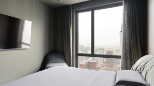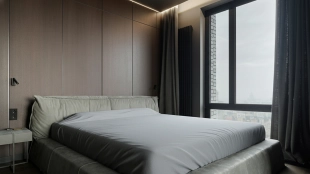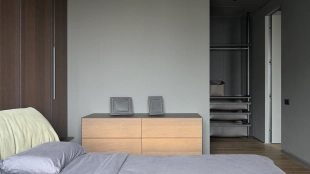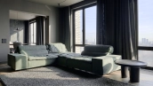 Видовая квартира с 2 спальнями общей площадью 136 м² в комплексе бизнес-класса «Пресня Сити». Квартира с дизайнерской отделкой расположена на последнем 44 этаже, откуда открываются панорамные виды на Москву. Выполнена дизайнерская отделка в современном стиле с использованием фактуры дерева и гранита.