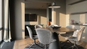 Полностью укомплектована мебелью от Baxter, Paltrona Frau, Antonio Lupi. Функциональная планировка включает просторную кухню-гостиную с обеденной и ТВ зонами, мастер-спальню с собственной гардеробной и ванной комнатой с двумя окнами, вторую спальню со своим санузлом, гостевой санузел, прихожую с гардеробной и холл.