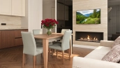 Сантехника представлена брендом Villeroy&Boch. Функциональная планировка включает кухню-гостиную с обеденной зоной и биокамином, мастер-спальню с собственной ванной комнатой и гардеробной, 2 спальни, санузел с душевой кабиной и холл. Дополнительно предусмотрено много мест для хранения вещей. Широкоформатные окна ориентированы на две стороны света.