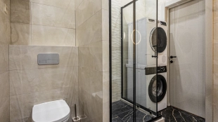Установлена система индивидуального кондиционирования. Функциональная планировка включает кухню-столовую, спальню со своей гардеробной, санузел с ванной, душевой кабиной и постирочной зоной, прихожую. Из широкоформатных окон открываются виды на детский сад и Верхнюю улицу.