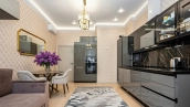 Квартира с 1 спальней общей площадью 63 м² в комплексе премиум-класса «Суббота» на 3 этаже. Выполнена дизайнерская отделка в стиле современной классики. Продуманы различные сценарии освещения, в том числе подсветка потолков. Квартира полностью меблирована и укомплектована всей необходимой бытовой техникой.