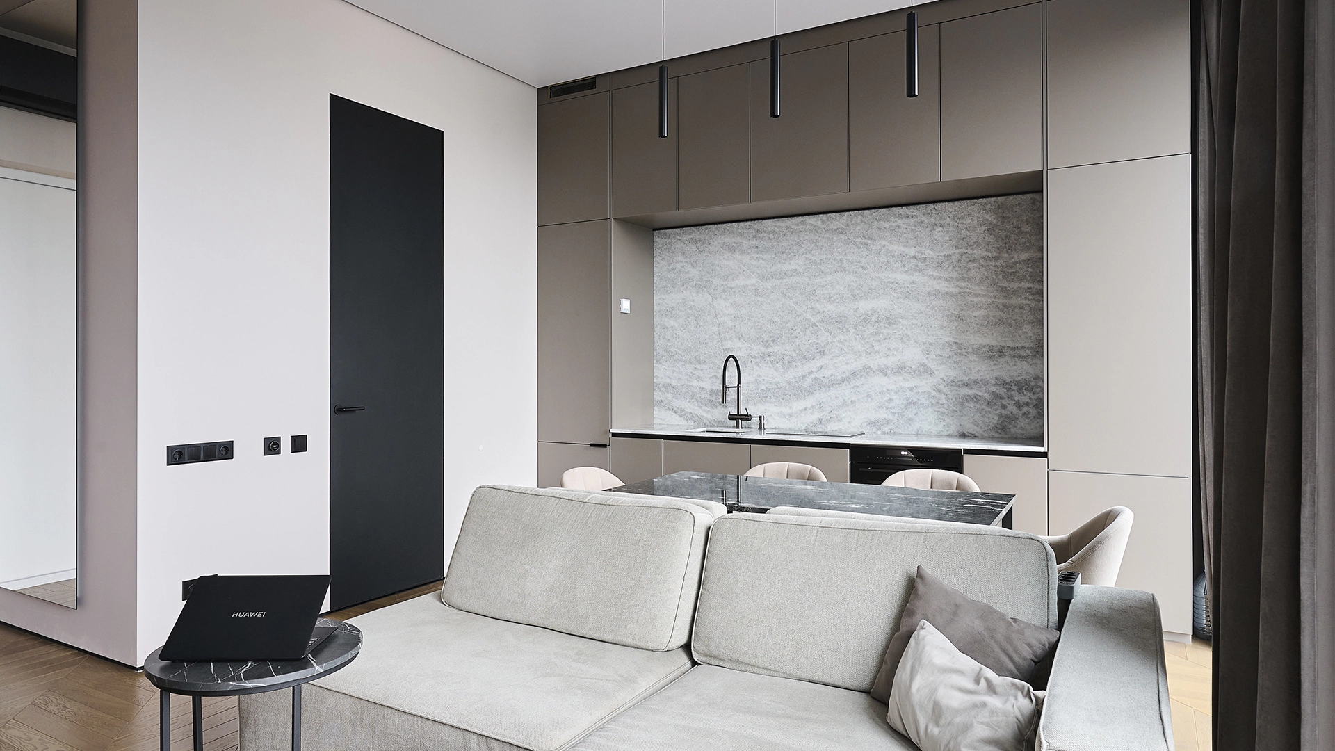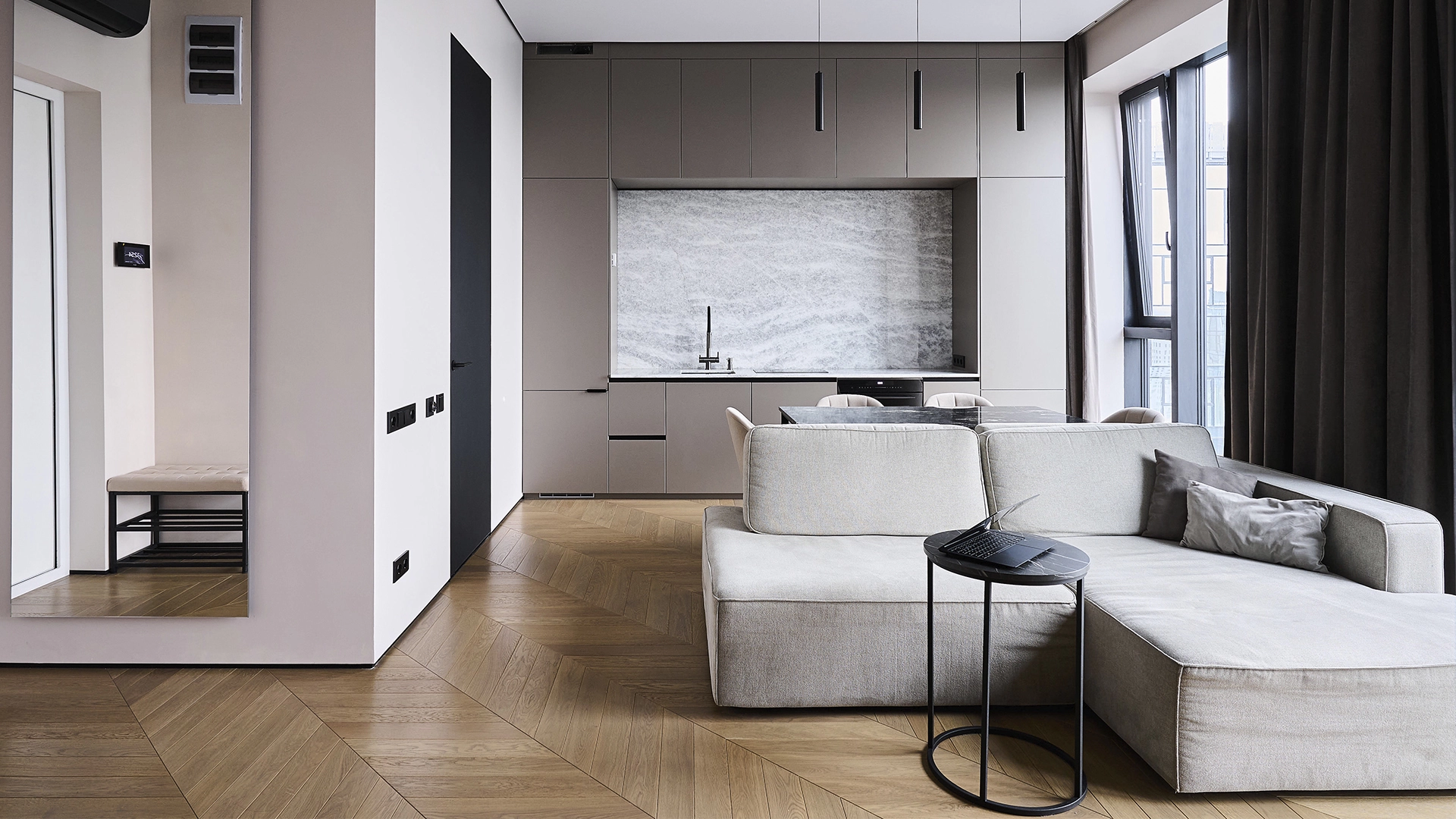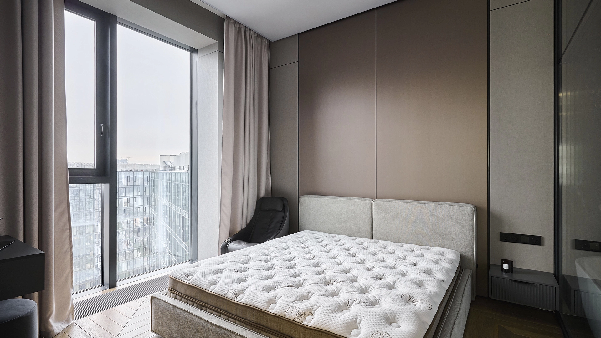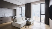 Квартира с 1 спальней общей площадью 56 м² в комплексе «Level Причальный» на берегу Москвы-реки. Квартира с дизайнерской отделкой расположена на 32 этаже в корпусе «Север». Интерьер оформлен в современном стиле. Установлена система индивидуального кондиционирования.