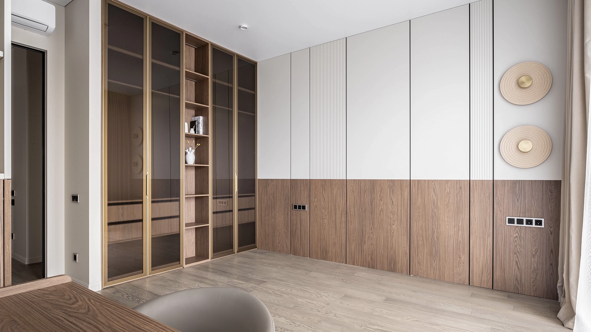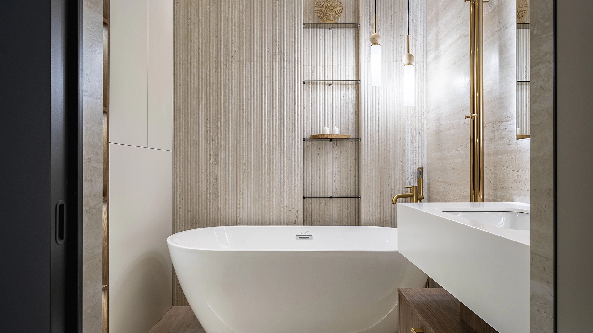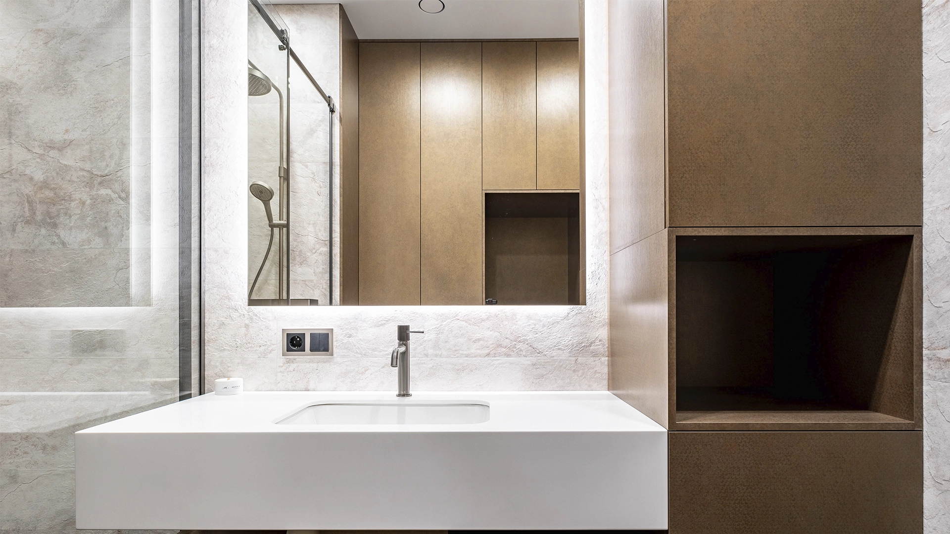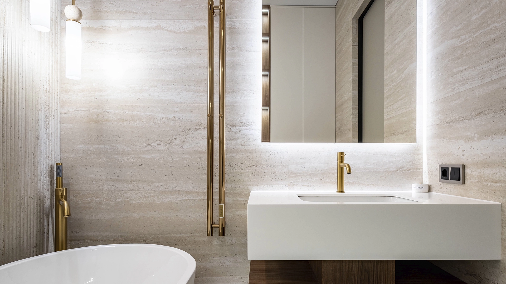 Угловая квартира с 3 спальнями общей площадью 104 м² в клубном доме бизнес-класса Full House. Квартира с дизайнерской отделкой расположена на 12 этаже в корпусе 1. В оформлении использованы натуральные материалы — дубовый шпон, инженерная доска. Квартира полностью меблирована и укомплектована техникой Gorenje.