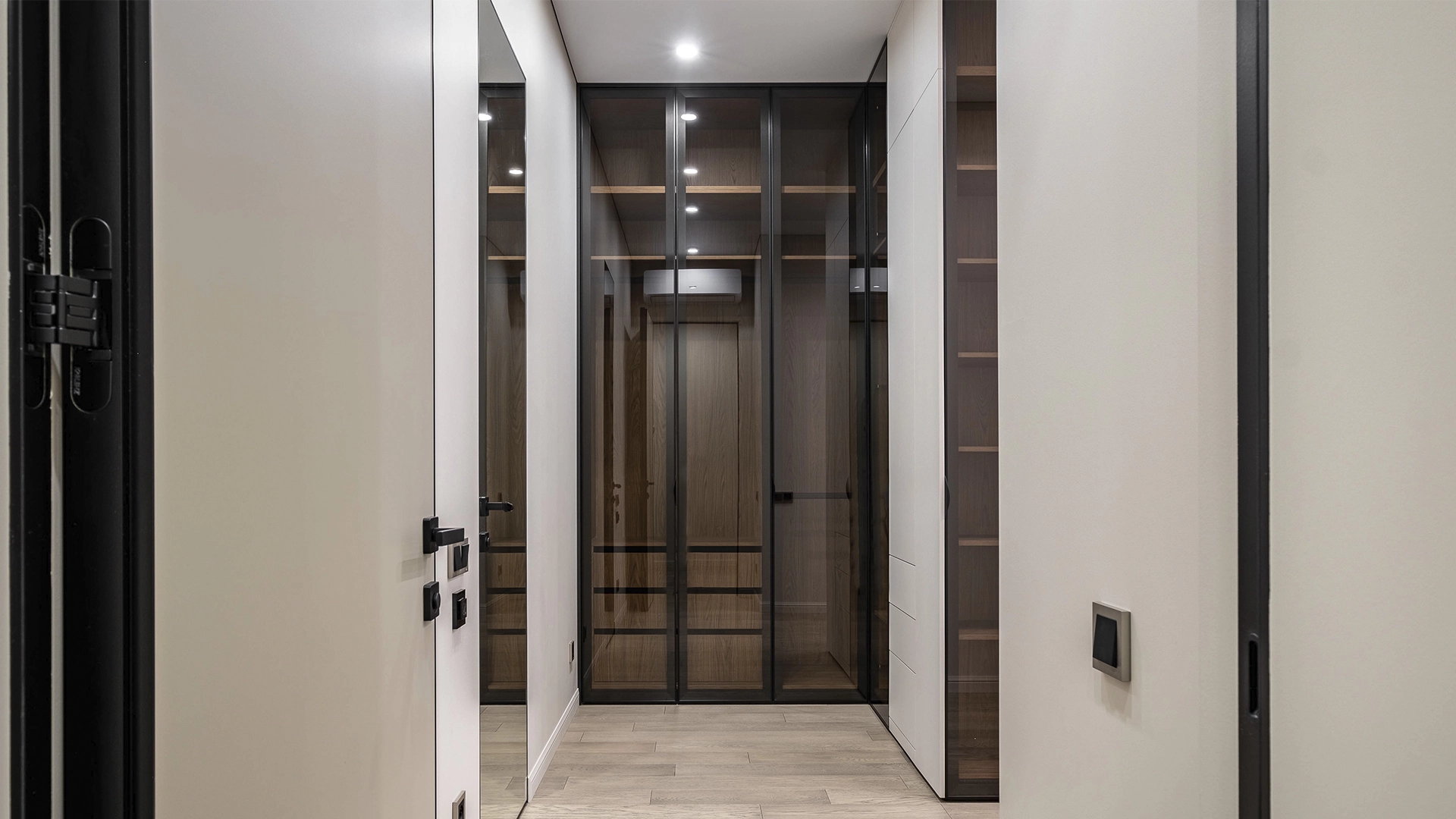 Высота потолков 3 метра. Функциональная планировка включает кухню-гостиную с обеденной зоной, мастер-спальню с собственной ванной комнатой и гардеробной, 2 спальни, санузел с душевой и постирочной зоной, прихожую с гардеробной. Панорамные окна, ориентированные на две стороны света, открывают виды на город и академию РАНХиГС.