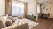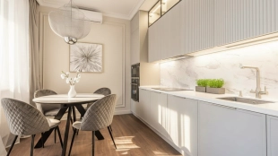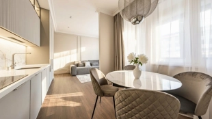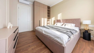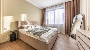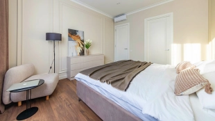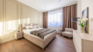 Апартаменты с 2 спальнями в комплексе премиум-класса «Искра-парк». Апартаменты площадью 85 м² расположены на 13 этаже. Выполнена дизайнерская отделка в неоклассическом стиле в пастельных тонах. Большие окна и потолки высотой 3 метра наполняют пространство светом и воздухом.