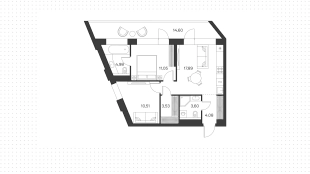 Квартиры c 2 спальнями, 63 м² в ЖК Forst, 13 этаж