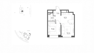 Квартиры c 1 спальней, 43 м² в ЖК Primavera, 3 этаж