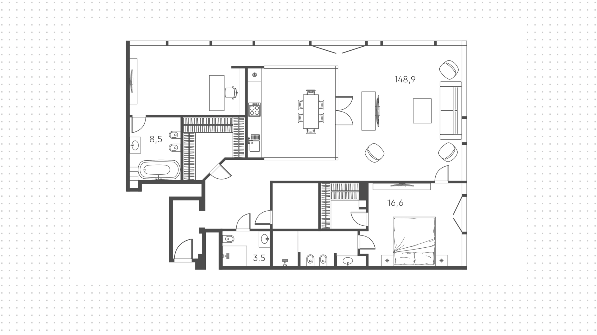 Квартиры c 2 спальнями, 178 м² в ЖК Панорама, 7 этаж
