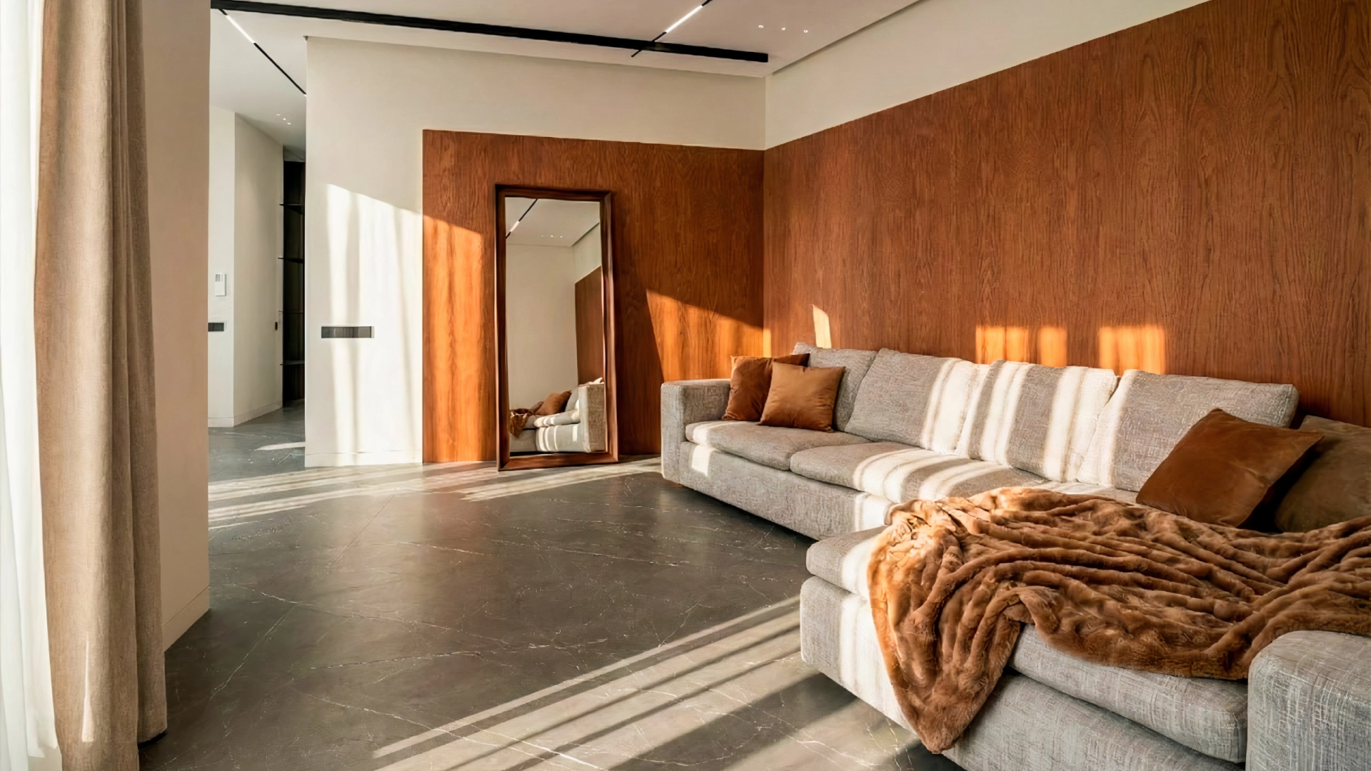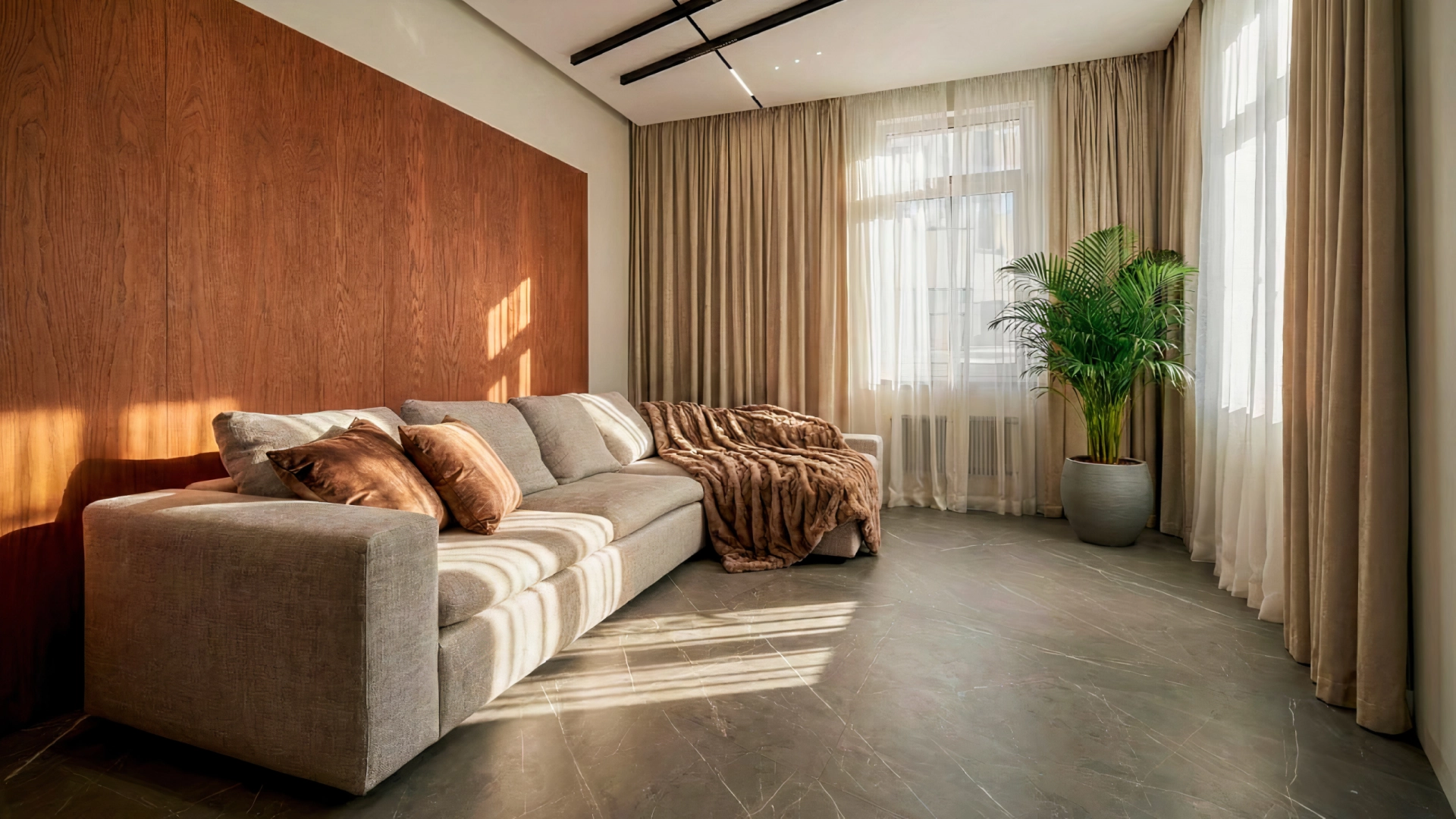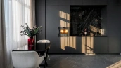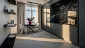 Студия общей площадью 43 м² в жилом комплексе Royal Park на первой береговой линии Малой Невы. В апартаментах выполнен дизайнерский ремонт c использованием натуральных материалов от лучших европейских производителей. В отделке сочетаются дерево, камень и широкоформатный керамогранит. Установлены двери бренда Rimadesio с увеличенными проёмами.