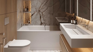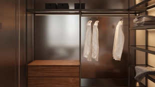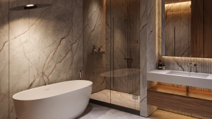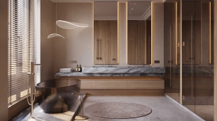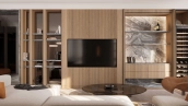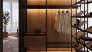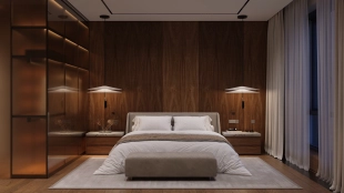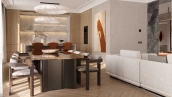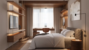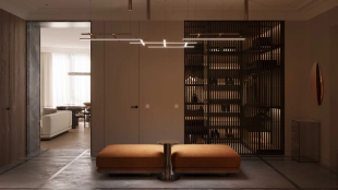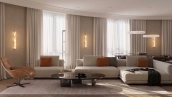 Квартира с 5 спальнями в комплексе премиум-класса «Жизнь на Плющихе» в Хамовниках. Квартира общей площадью 282 м² представляет собой две отдельные квартиры площадью 182 м² и 100 м², расположенные рядом на 4 этаже. Выполнена дизайнерская отделка в современном стиле в светлых тёплых тонах. В отделке использованы высококачественные и натуральные материалы: мрамор, шпон дуба, сатинированная сталь, декоративная штукатурка. Установлены двери скрытого монтажа Union, электрофурнитура Jung. Напольные покрытия — инженерная доска и мрамор.