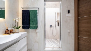 Квартира с 3 спальнями в комплексе бизнес-класса Vander Park. Квартира площадью 126 м² расположена на 18 этаже в корпусе 8. Выполнена дизайнерская отделка в светлых тонах с использованием фактуры мрамора и дерева. Установлена центральная система кондиционирования.