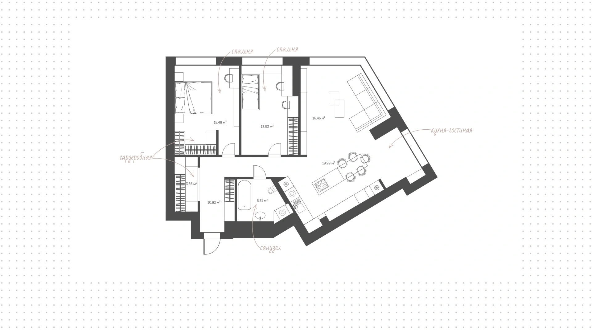 В ЖК Архитектор доступны различные планировки квартир, включая студии, одно-, двух- и трехкомнатные варианты. Также имеются двухуровневые квартиры и квартиры с лаундж-зонами.