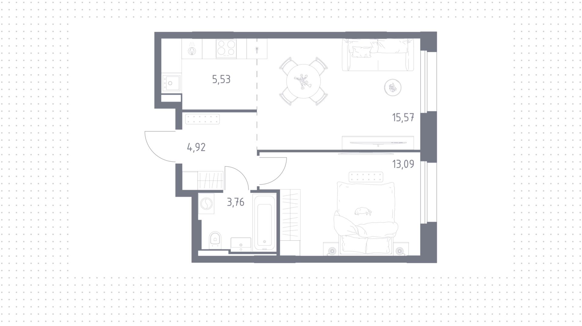 Квартиры c 1 спальней, 42 м² в ЖК «Заречье Парк», 6 этаж