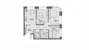 Квартиры c 3 спальнями, 74 м² в ЖК Остров, 6 этаж