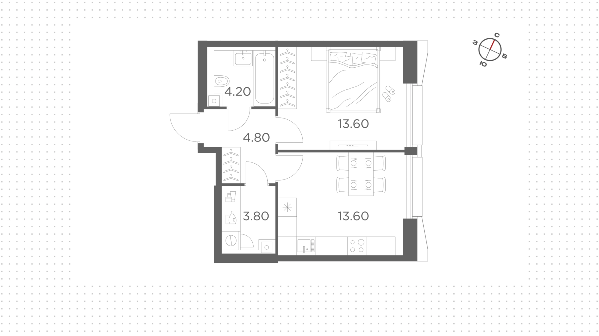 Квартиры c 1 спальней, 40 м² в ЖК INJOY, 30 этаж
