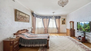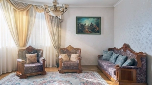 Просторная квартира с 2 спальнями общей площадью 197 м² в комплексе бизнес-класса «Дом Газпрома». Квартира с отделкой в классическом стиле расположена на 8 этаже. Интерьер в светлых тонах украшают дизайнерские люстры, картины и мебель из дерева. Установлена центральная система кондиционирования.