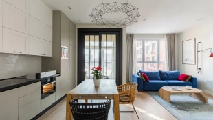 Функциональная планировка включает кухню-гостиную с выходом на застекленную лоджию, мастер-спальню со своей ванной комнатой, вторую спальню, санузел с душевой и постирочной зоной, прихожую со встроенными шкафами. Панорамные окна, ориентированные на две стороны света, открывают виды на Москву-реку и благоустроенную территорию комплекса. За дополнительную плату возможно прибрести машино-место в подземном паркинге.