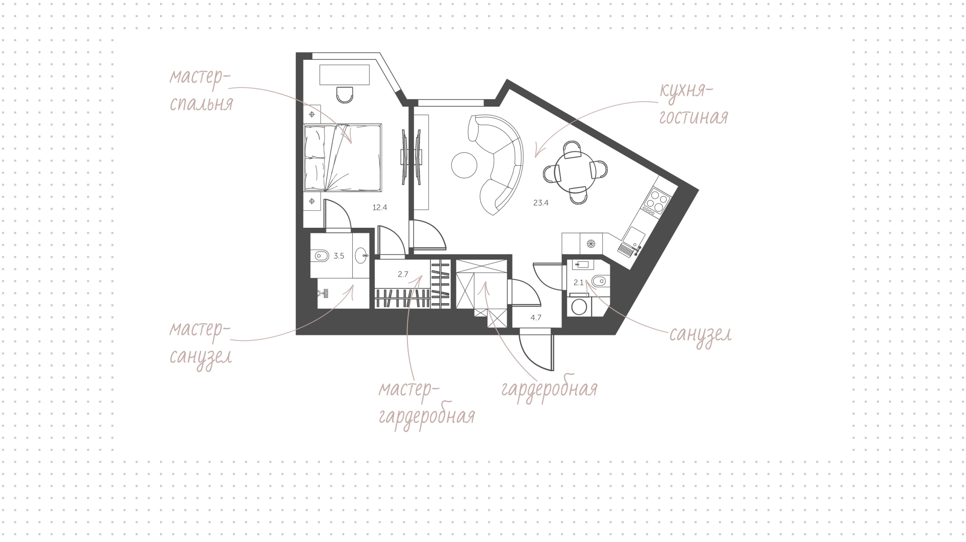 Квартиры c 1 спальней, 49 м² в ЖК «Архитектор», 17 этаж