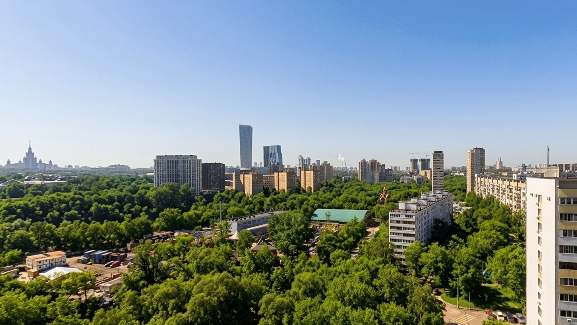 Две 42-этажные башни, утопающие в зелени парка-усадьбы Черёмушки-Знаменское. Этот вид стоит увидеть из панорамных окон квартир. Или насладиться им на террасе 39 этажа.