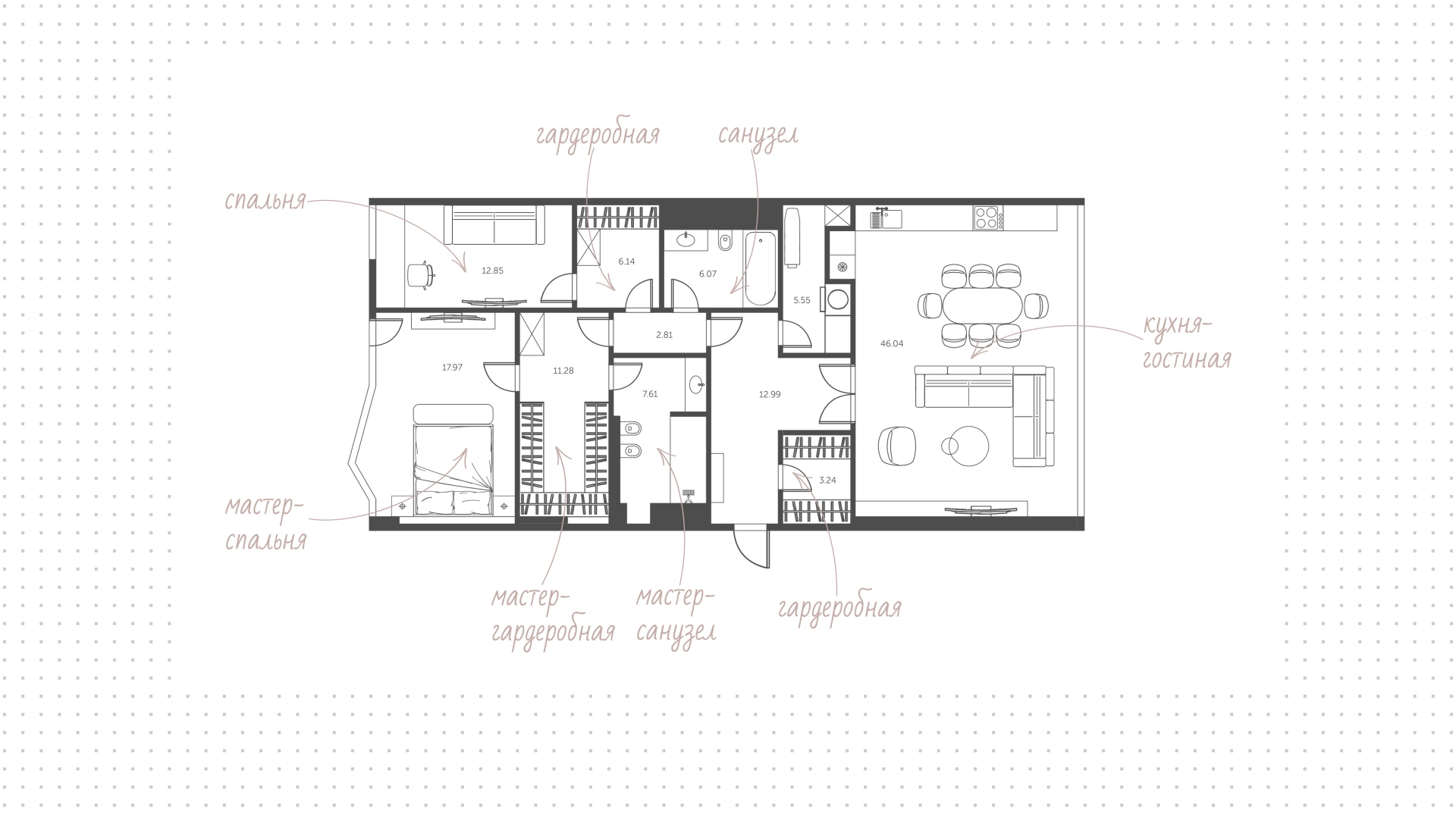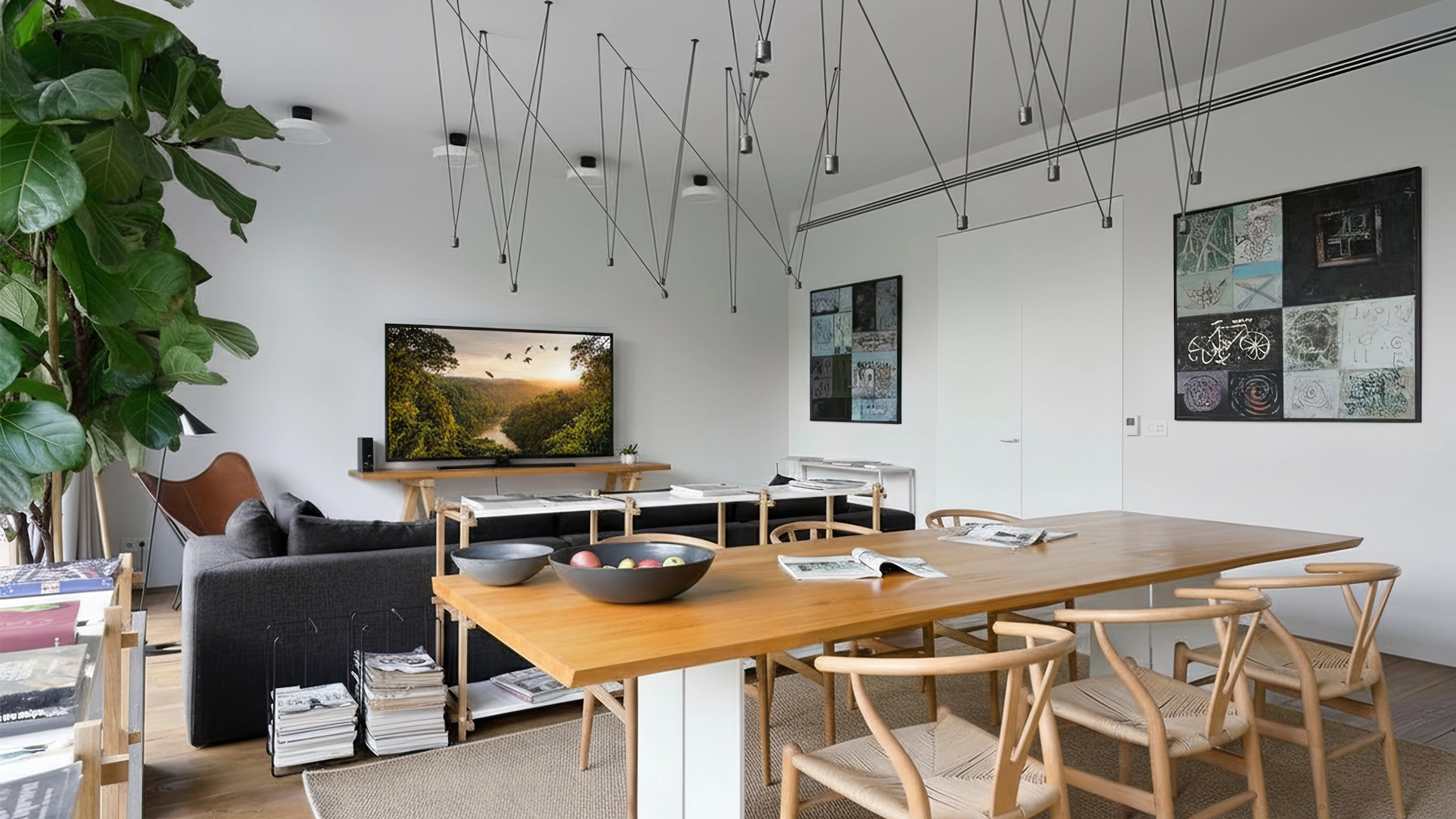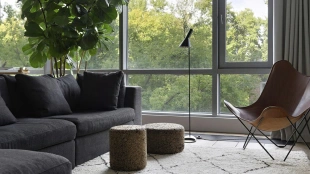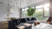 Квартира с 2 спальнями общей площадью 136 м² в комплексе премиум-класса Barkli Park на 2 этаже. Выполнена дизайнерская отделка с использованием натуральных материалов — массива дерева и итальянского сланца. Квартира укомплектована мебелью от Meridiani, Poliform и Riva 1920; кухня Varenna оборудована премиальной бытовой техникой. Освещение от Delta Light и Louis Poulsen.