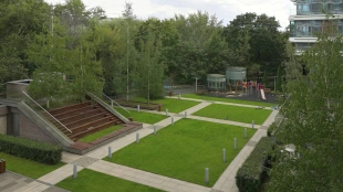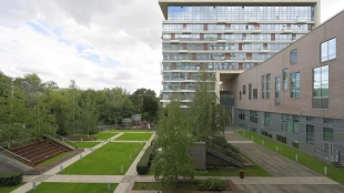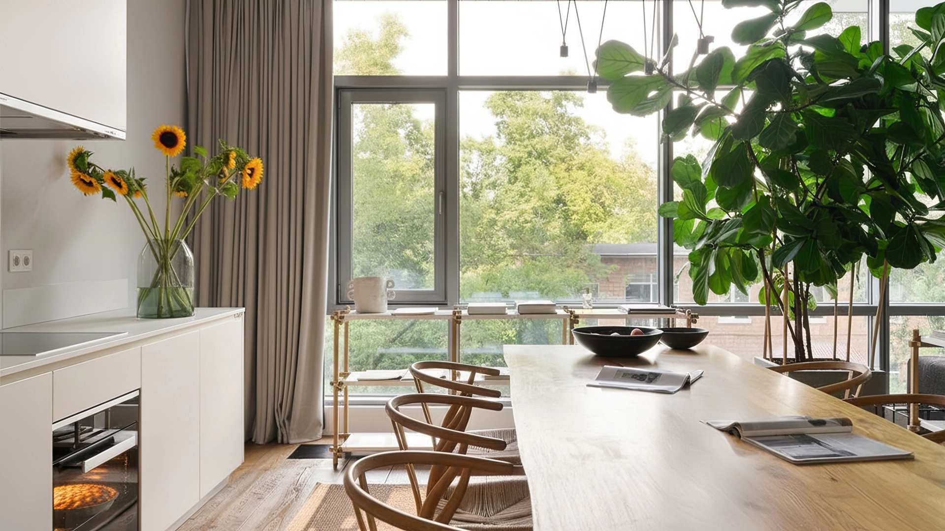 Благодаря панорамному остеклению и высоте потолков 3,2 метра пространство наполнено естественным светом и теплом. Из окон открываются виды на тихий сквер и благоустроенную территорию комплекса.