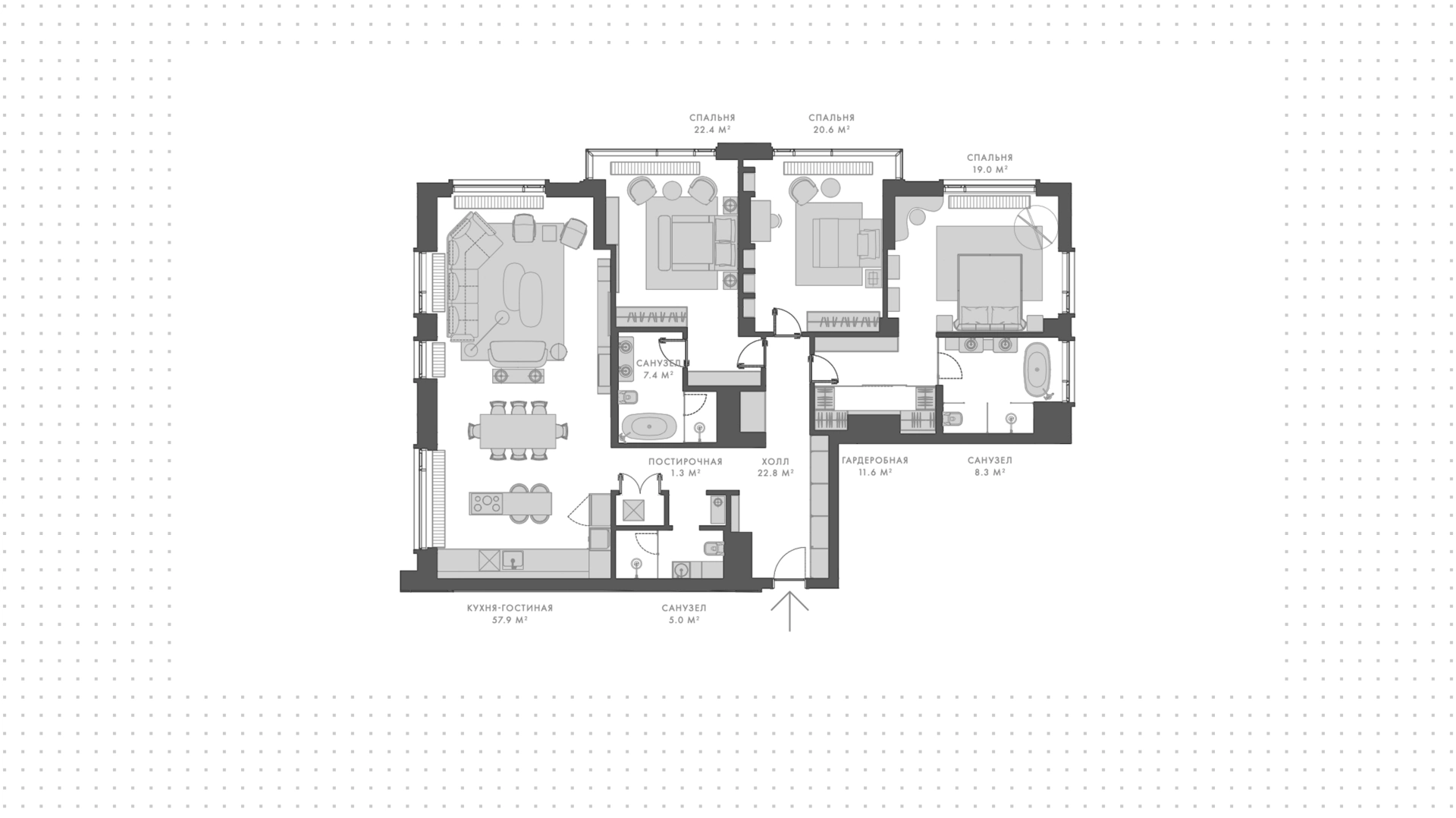 Апартаменты c 3 спальнями, 178 м² в ЖК Поклонная, 9, 27 этаж