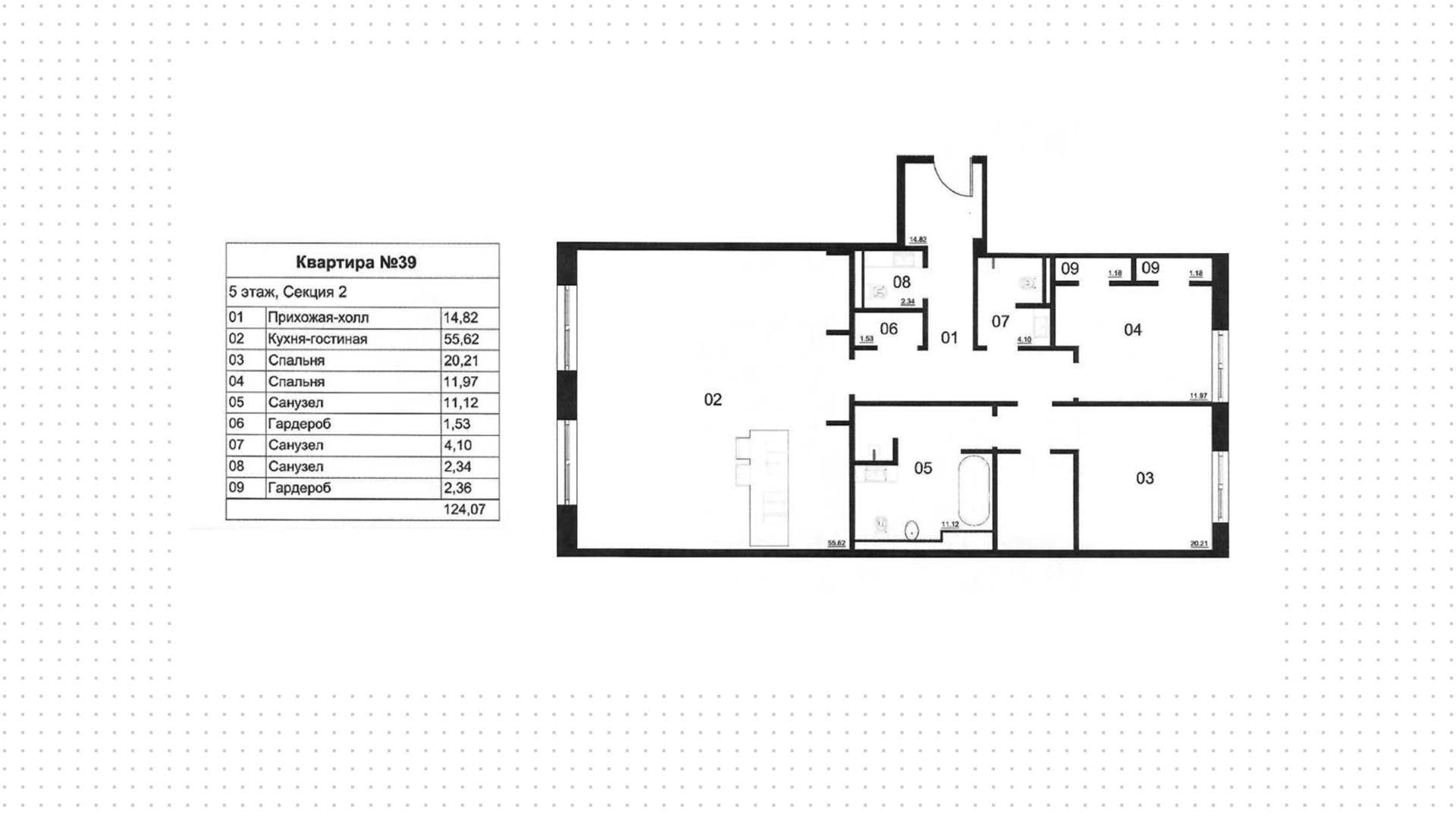 Квартиры c 2 спальнями, 125 м² в ЖК TURGENEV, 5 этаж