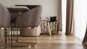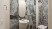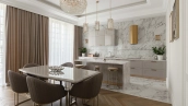 Планировка: просторная кухня-гостиная с обеденной зоной, основная спальня с гардеробной и ванной комнатой, вторая спальня, кабинет, ванная комната, гостевой санузел, гардеробная, постирочная, холл. В гостиной обустроена зона отдыха с уютными диванами, кухня зонирована столом-островом. Установлена приточно-вытяжная система вентиляции и кондиционирования. Окна выходят на две стороны света, предусмотрен открытый балкон с видом на улицу. В подземном паркинге два машиноместа.