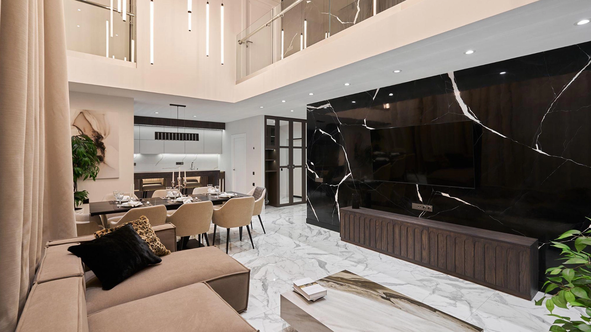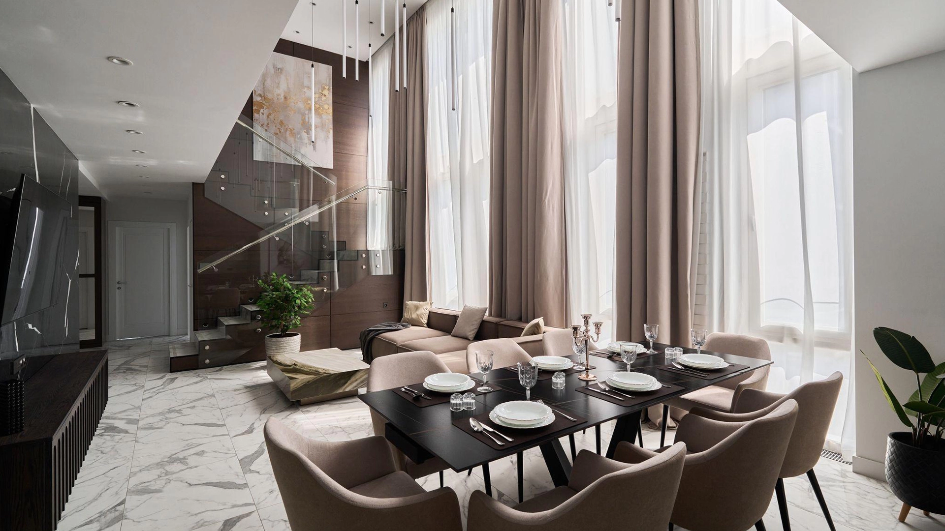 Двухуровневая квартира с 4-мя спальнями общей площадью 186 м² в комплексе Now. Квартира с готовой дизайнерской отделкой расположена на последних 12-13 этажах в корпусе 4.4. В отделке премиум-класса использовано натуральное дерево и камень. В гостиной спланирован второй свет. Из высоких панорамных окон открывается живописный вид на реку и город.