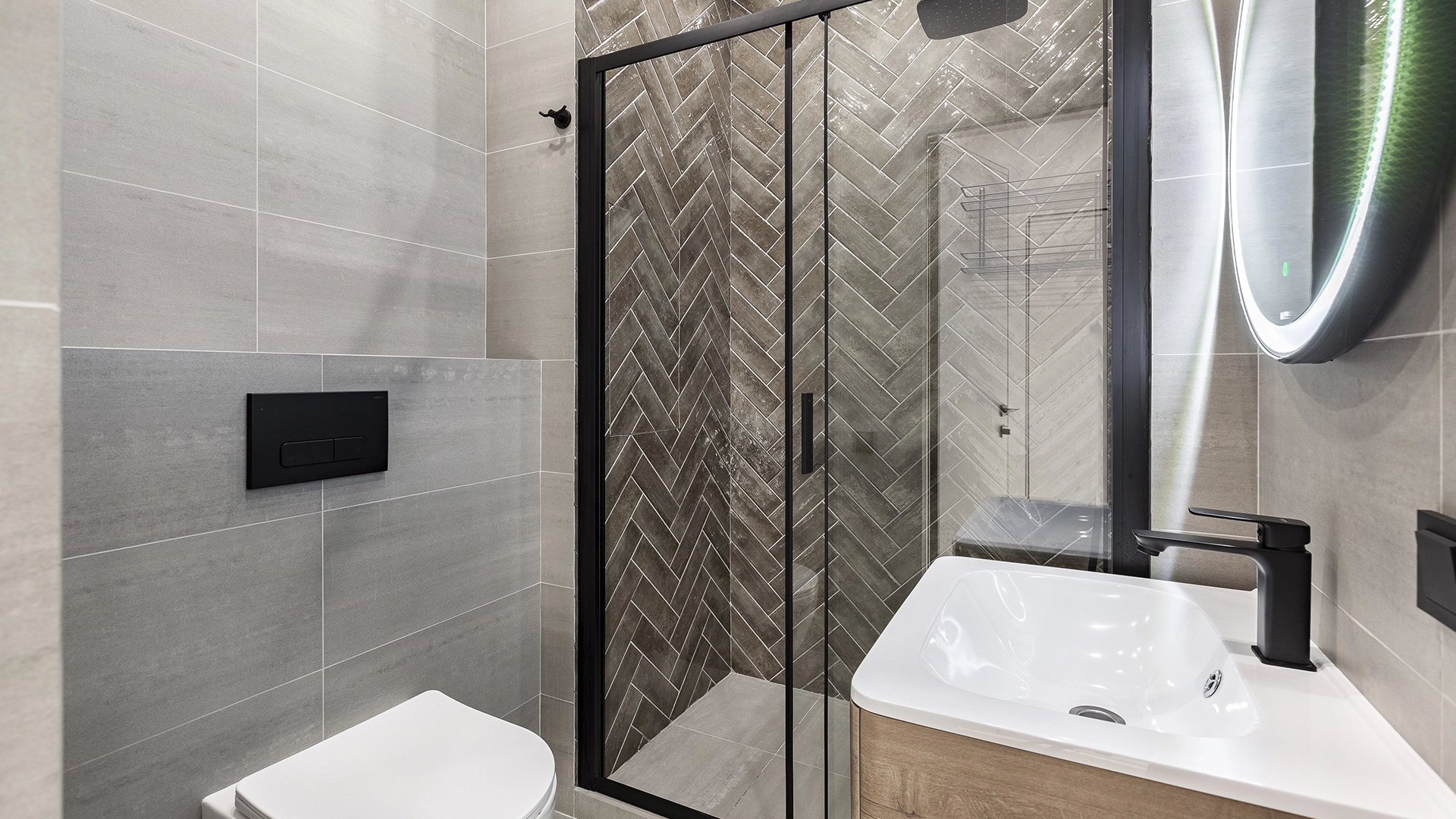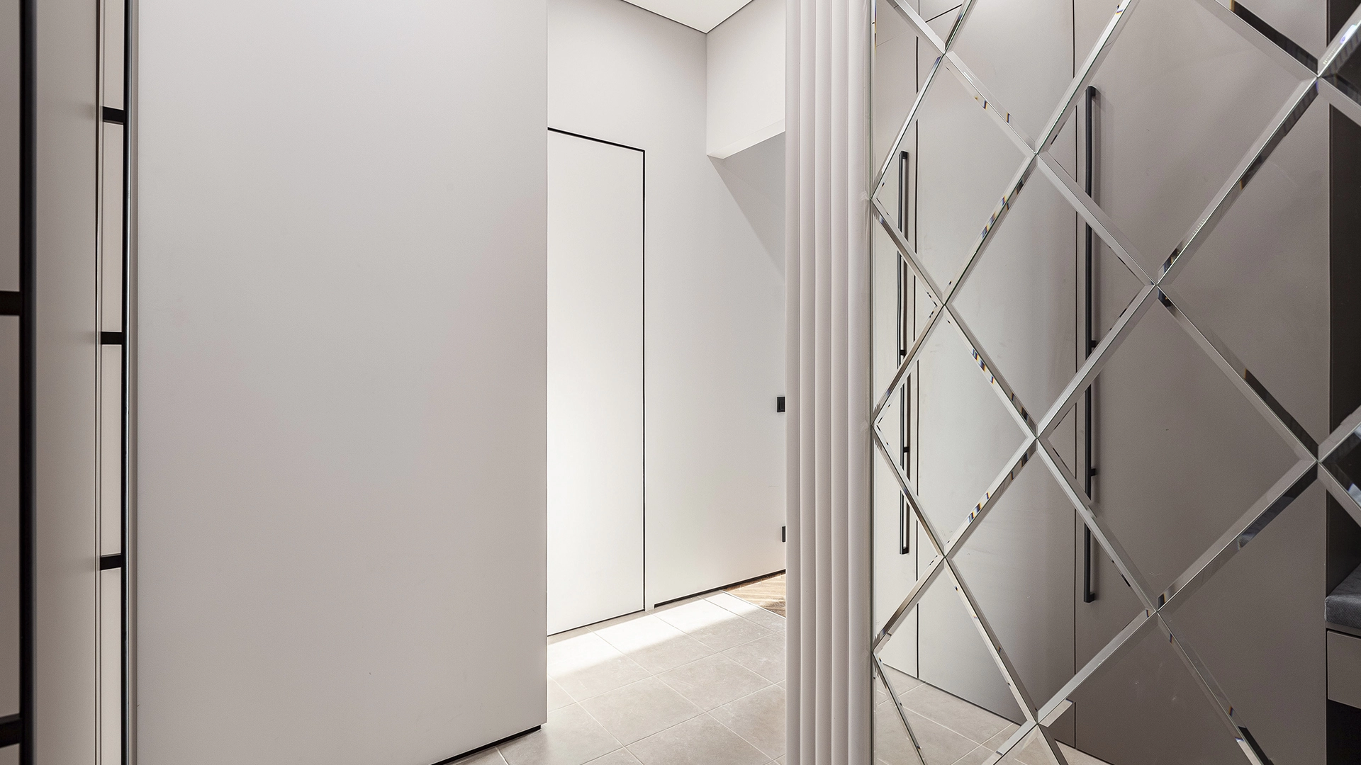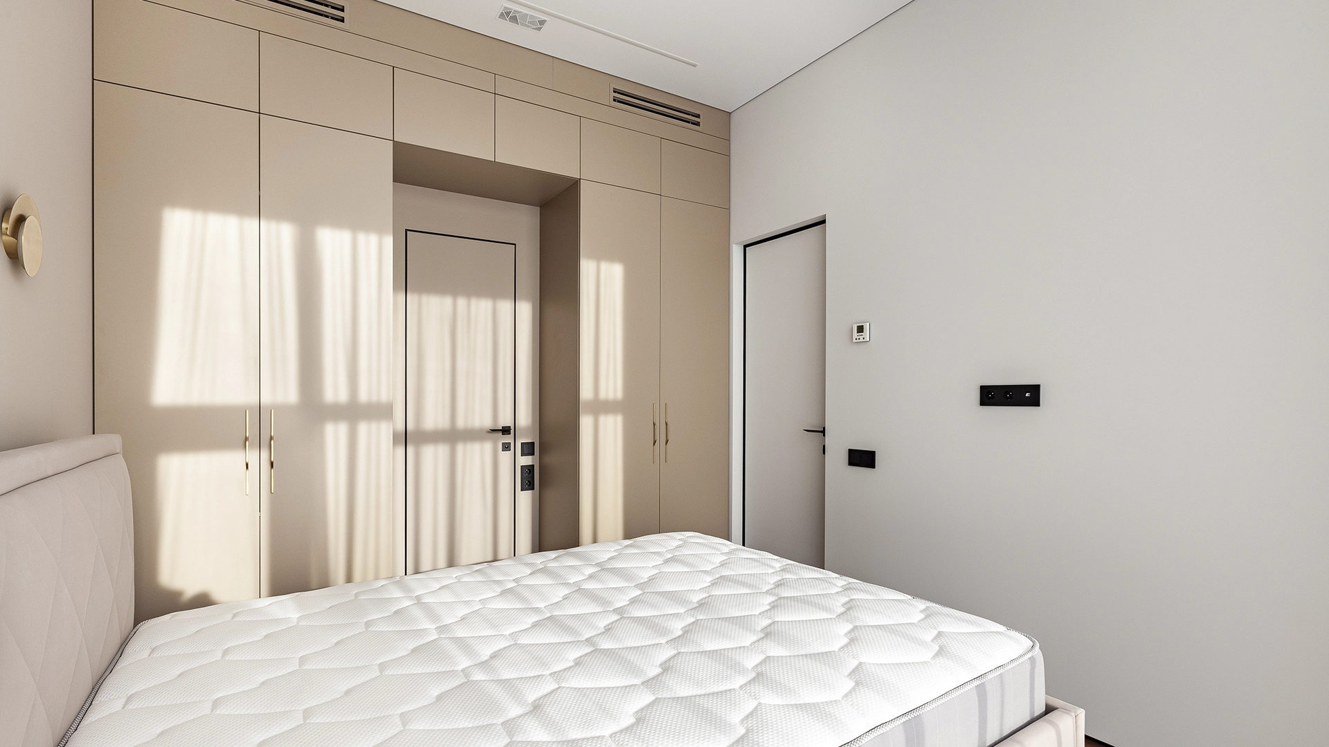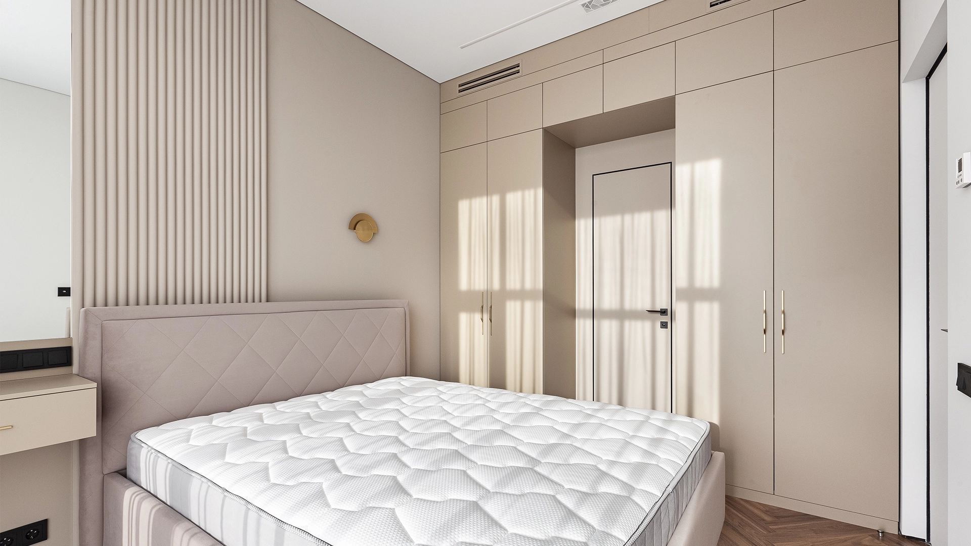 Интерьер укомплектован мебелью и встроенной бытовой техникой Weissgauff — варочная панель, духовой шкаф, микроволновая печь, посудомоечная машина, вытяжка, холодильник. Функциональная планировка: кухня-гостиная, две спальни, два санузла, прихожая. Пять широких панорамных окон «в пол» наполняют пространство естественным светом, открывая виды на город.