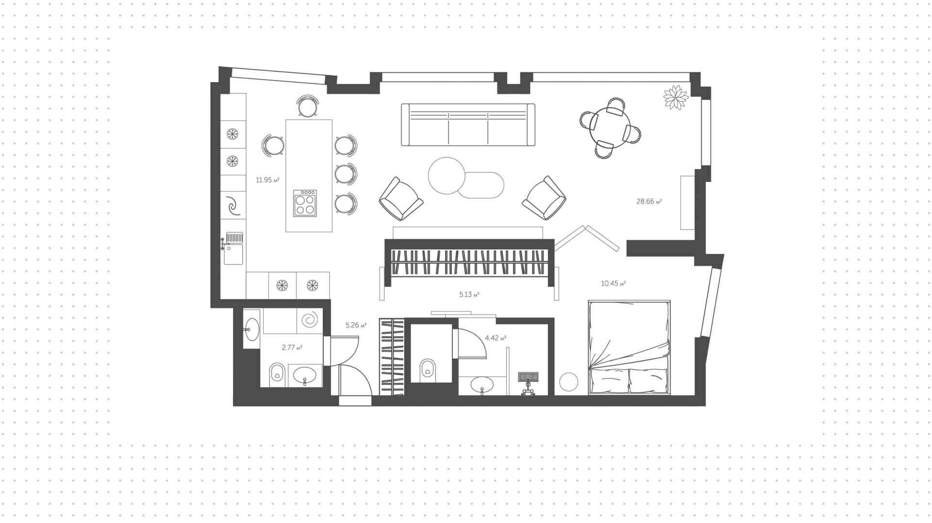 Апартаменты c 1 спальней, 69 м² в ЖК Maison Rouge, 2 этаж
