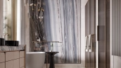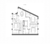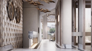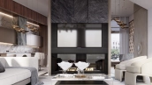 1-й этаж: просторная кухня-гостиная с газовым камином и выходом в собственное камерное патио 100 м². 2-й этаж: три мастер-спальни с санузлами и гардеробными. 3-й этаж: большая мастер-спальня, кабинет, гардеробная, уютная терраса с зоной барбекю 22 м². Цокольный этаж: комната для персонала, техническое помещение. На нулевом этаже подземный паркинг с 2 машиноместами.