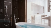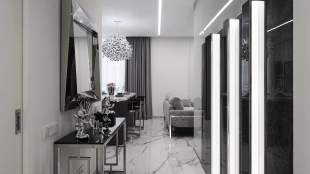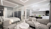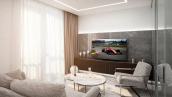 Квартира с 1-й спальней общей площадью 57 м² в премиальном доме NV9. Квартира расположена на 2 этаже, выполнена дизайнерская отделка премиум-класса, выложена плитка итальянского производства, установлены умные стеклянные перегородки smart стекло. Интерьеры наполнены мебелью Estética Vizion и Ralph Lauren, кухня, шкаф и гардеробная от бренда Zetta, техника Neff и Miele. Планировка: просторная кухня-гостиная с двумя окнами, спальня, ванная комната, прихожая. Благодаря панорамным окнам пространство наполнено светом.
