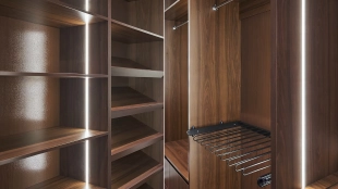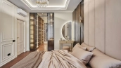 Интерьер укомплектован мебелью и техникой Kuppersberg, Samsung. Спланирована кухня-гостиная с выходом на балкон, спальня, санузел с душевой кабиной, гардеробная, холл. Благодаря панорамному остеклению пространство наполнено естественным светом, открываются виды на благоустроенную территорию комплекса.