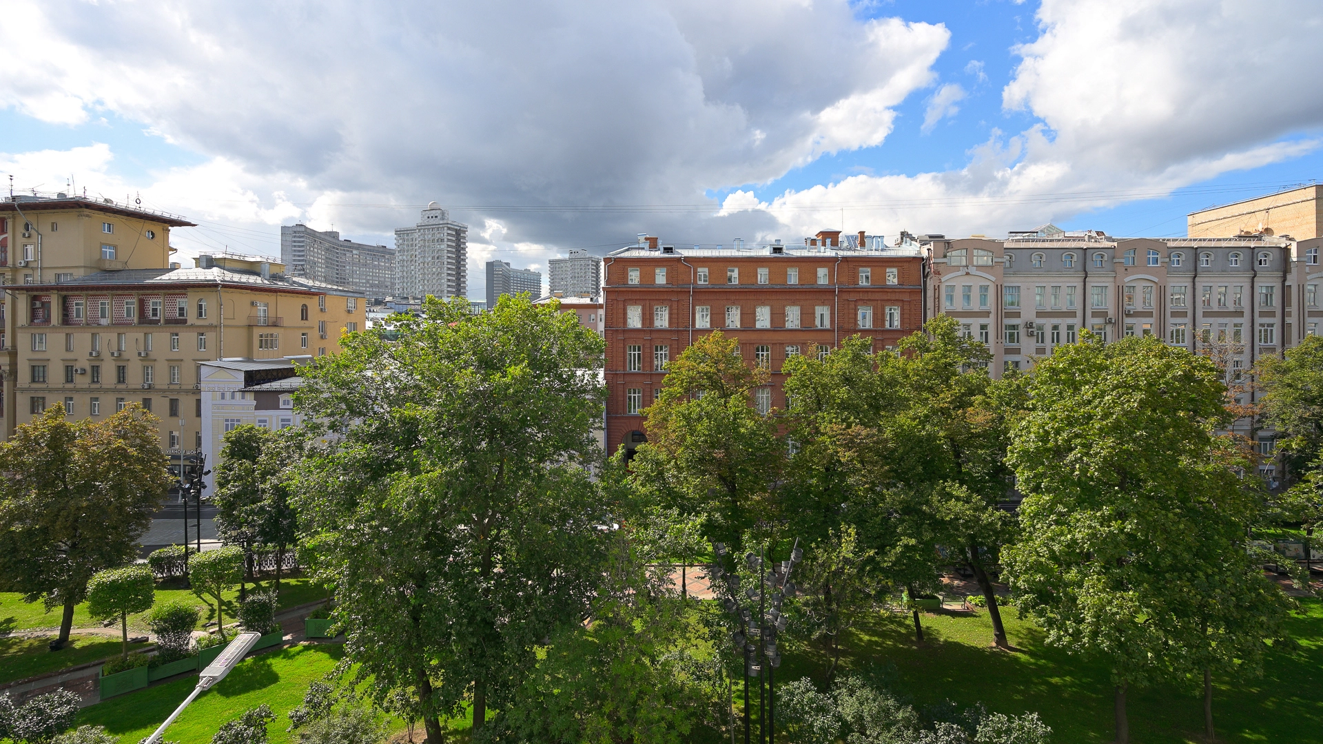 Квартира с 3-мя спальнями общей площадью 142 м² в историческом доме «Никитский бульвар, 12» на 5 этаже. В квартире выполнена отделка в классическом стиле, на полу выложен паркет. Благодаря потолкам высотой 3,6 метра пространство наполнено воздухом. Спланирована гостиная, кухня-столовая, 3 спальни, ванная комната, гостевой санузел, прихожая. Из гостиной и спальни предусмотрены выходы на балконы. Квартира полностью меблирована и укомплектована бытовой техникой, установлены кондиционеры. Окна ориентированы на две стороны, открываются виды на Никитский бульвар и в тихий двор.