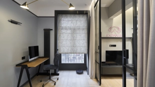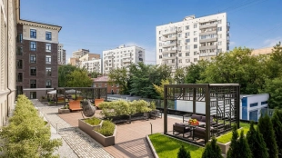 Интерьеры полностью укомплектованы мебелью и техникой от ведущих производителей — Bosch, Samsung. Планировкой предусмотрены кухня-гостиная, спальня с оборудованной рабочей зоной, санузел с душевой кабиной и постирочная. Окна ориентированы на две стороны, открываются панорамные виды на уютный зелёный внутренний двор и террасу.