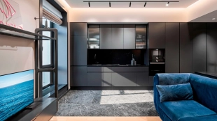Апартаменты с 1-й спальней площадью 46 м² в клубном доме премиум-класса Sinatra. Апартаменты с отделкой расположены на 3-м этаже. Выполнен дизайнерский ремонт в стиле минимализм в сдержанных серых оттенках с использованием премиальных материалов. При реализации проекта продуманы многоуровневые световые сценарии для создания уюта и ощущения приватности. Для дополнительного комфорта предусмотрена система кондиционирования.