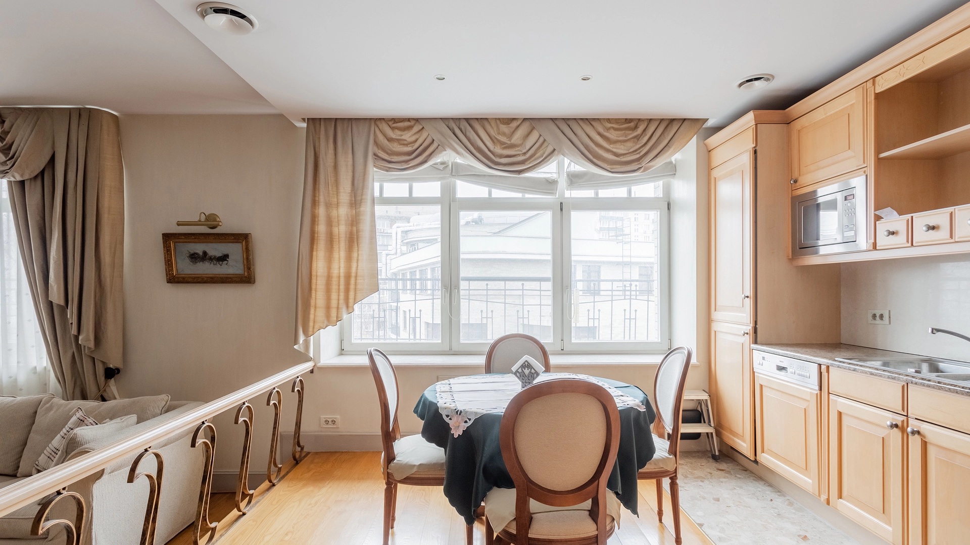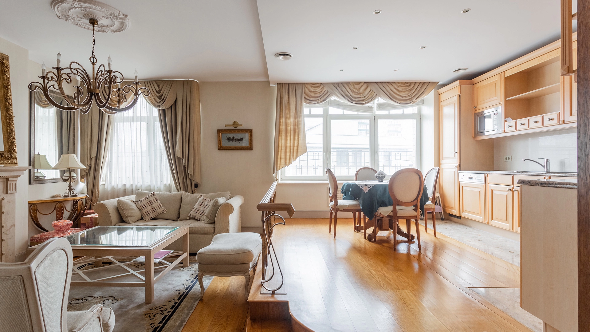 Двухуровневая квартира общей площадью 100 м² в малоквартирном доме «Большая Пионерская, 20». Выполнен дизайнерский ремонт от Вероники Блумгрен — основательницы школы дизайна «Детали» и декоратора Марата Ка. В отделке использованы натуральный мрамор и дерево. Квартира полностью укомплектована мебелью из Англии, Америки, Италии и оборудована премиальной бытовой техникой.