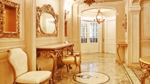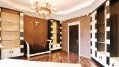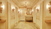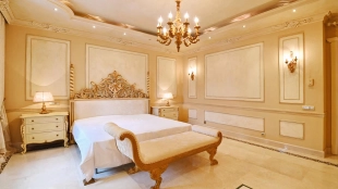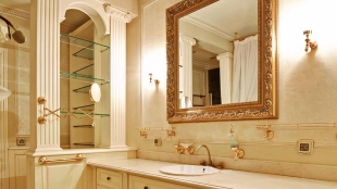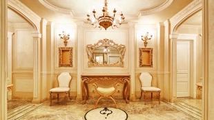 Просторная квартира с 3-мя спальнями в комплексе «Покровское-Глебово» рядом с набережной Химкинского водохранилища. Квартира общей площадью 246 м² расположена на 3-м этаже. Выполнена дизайнерская отделка в классическом стиле в светлых тонах. Стены декорированы пилястрами и молдингами, потолки украшены лепниной. Интерьер дополняют настенные и подвесные светильники, зеркала в позолоченных рамах.