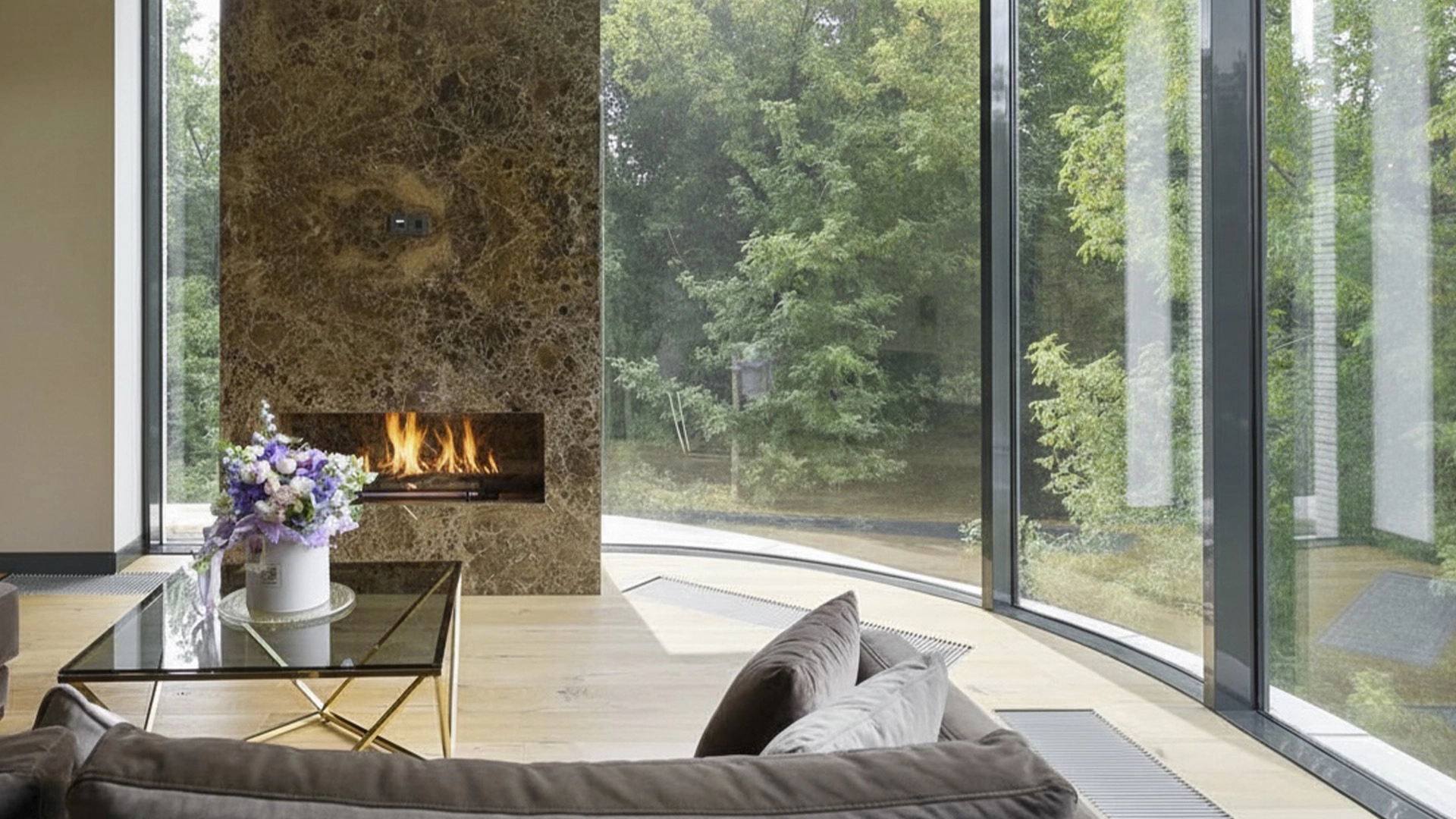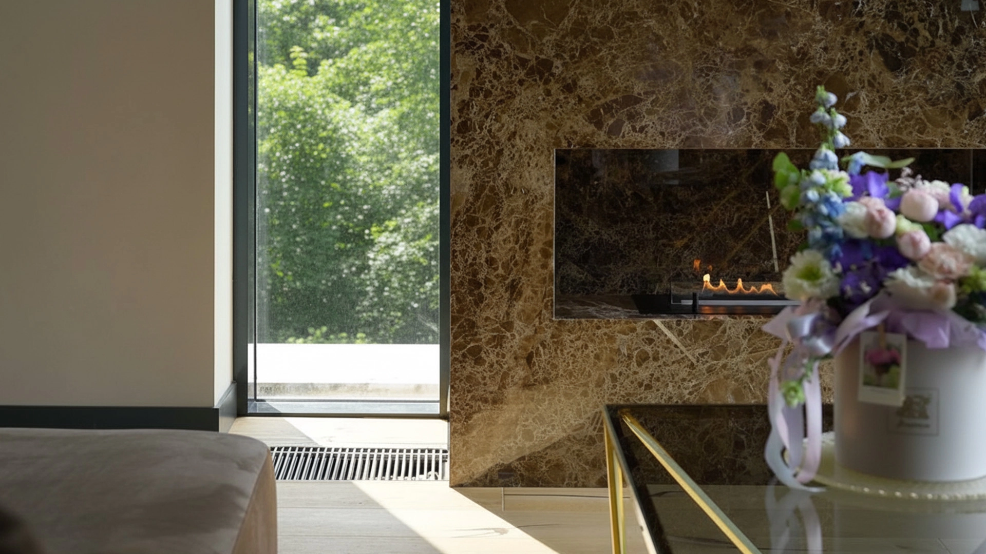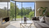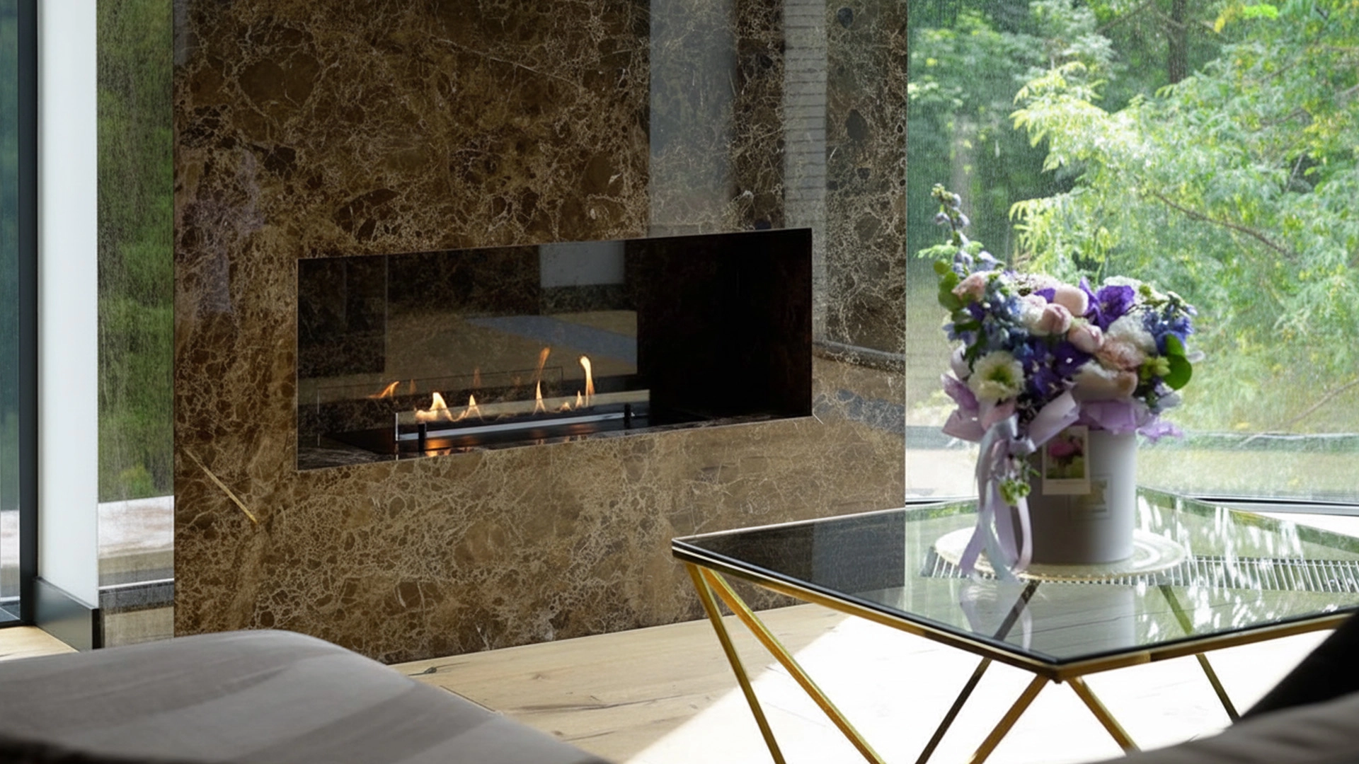 Высота потолков — 3 метра. В прихожей, санузлах и на кухне установлена система теплый топ. Функциональная планировка включает кухню-гостиную с камином, 2 спальни, 2 санузла, гардеробную и холл. Благодаря панорамному остеклению пространство наполнено естественным светом, открываются виды на природный заказник «Долина реки Сетунь» и Воробьевское шоссе.