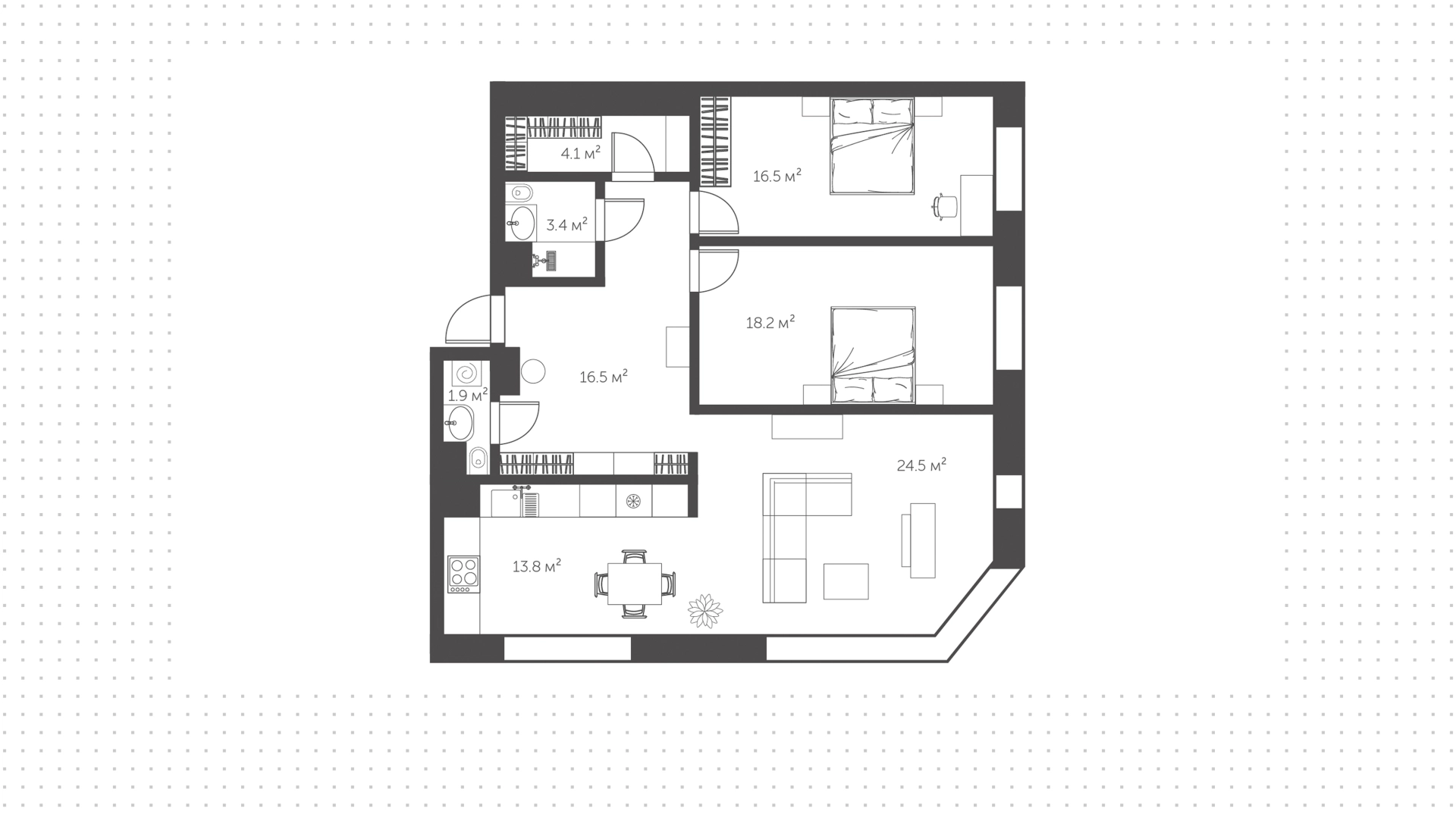 Квартиры c 2 спальнями, 99 м² в ЖК Воробьев дом, 2 этаж