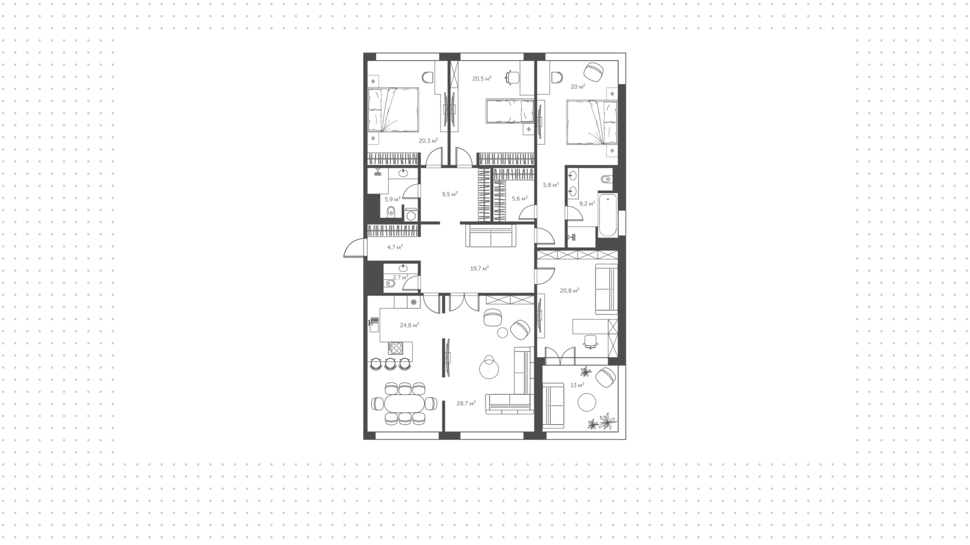 Квартира с 4-мя спальнями, 211 м²