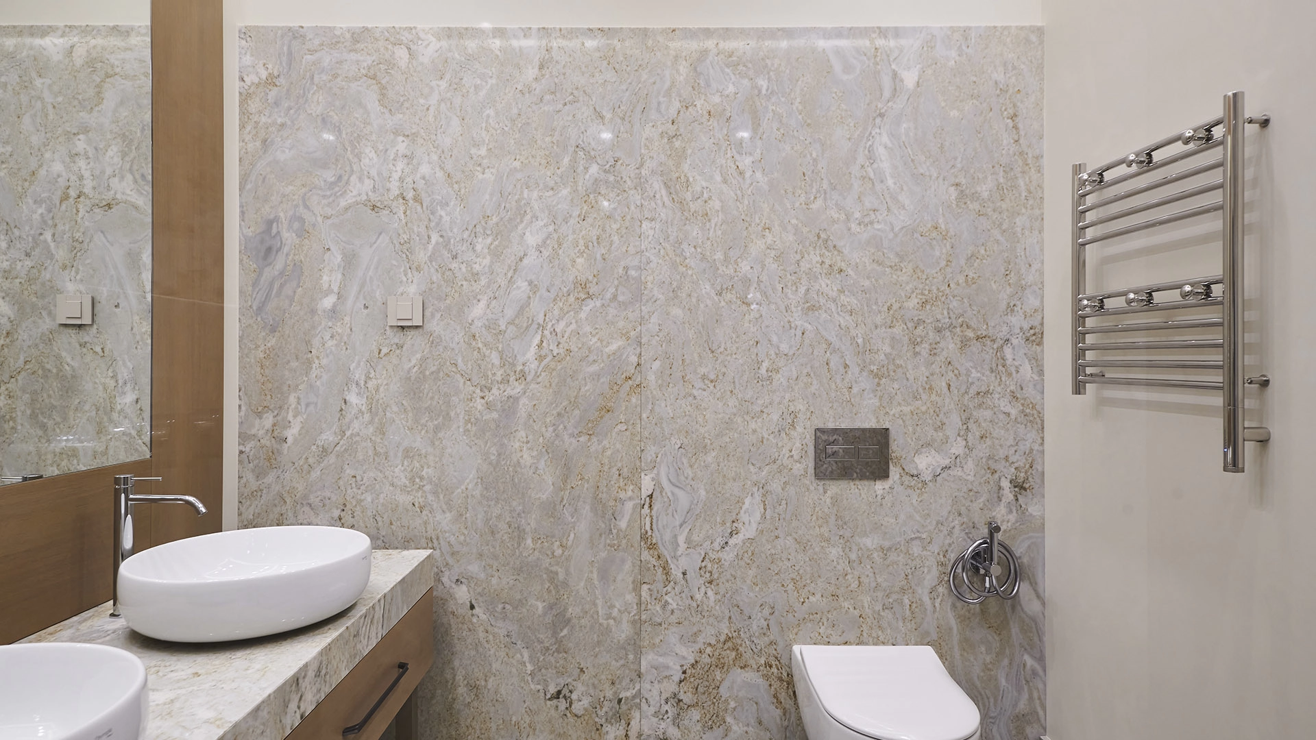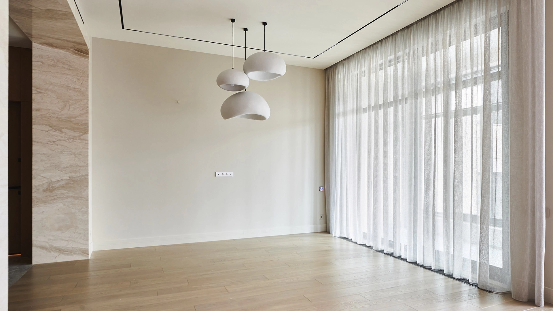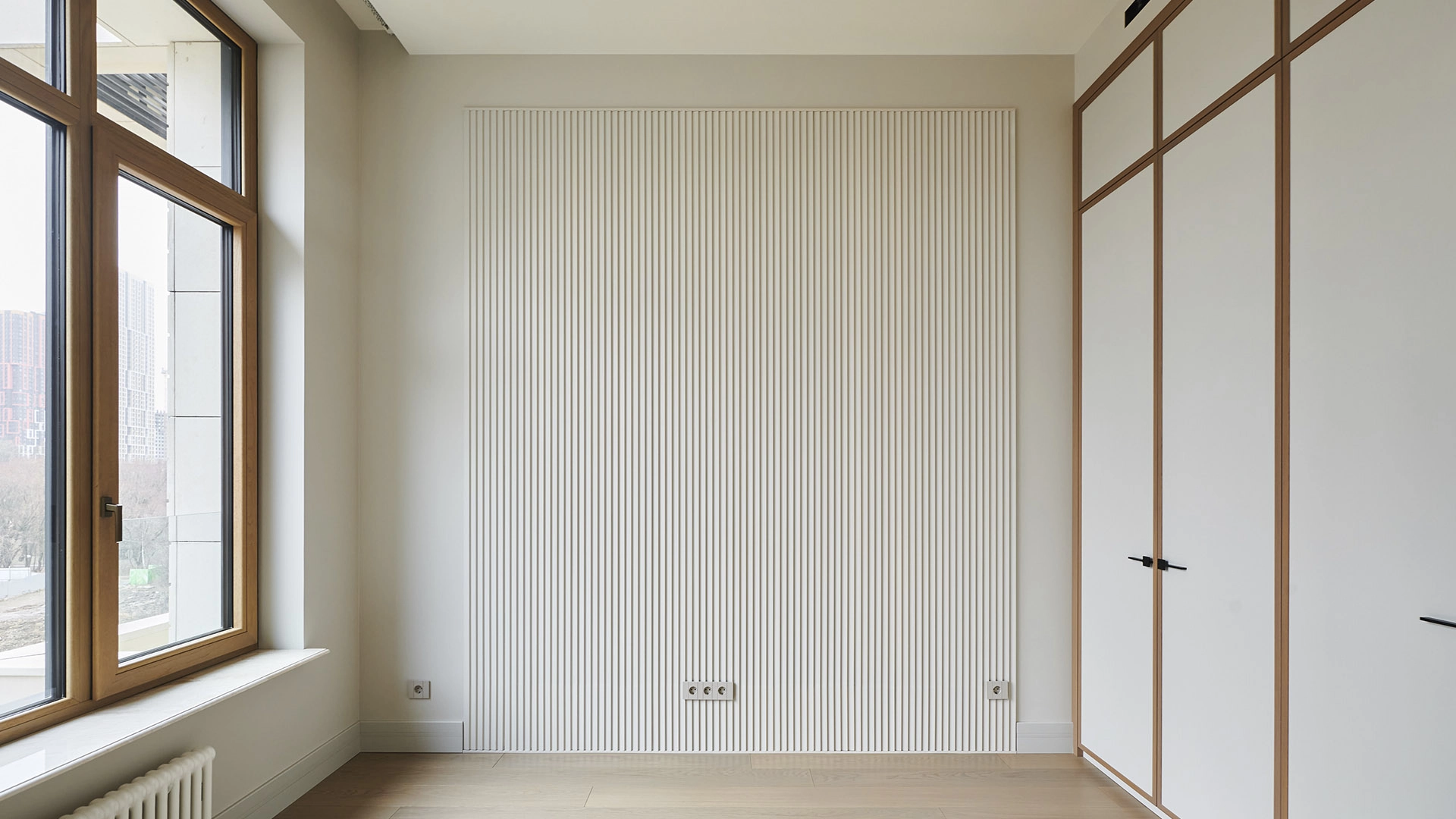 Просторная квартира с 2-мя спальнями в комплексе премиум-класса «Река» у самой границы природной территории «Долина реки Раменки». Квартира общей площадью 125 м² расположена на 4-м этаже. Выполнен дизайнерский ремонт в современном стиле с использованием высококачественных материалов — натурального камня и мрамора. Особый акцент в оформлении создаётся за счёт панелей из дерева. Высота потолков — 3,65 метра.