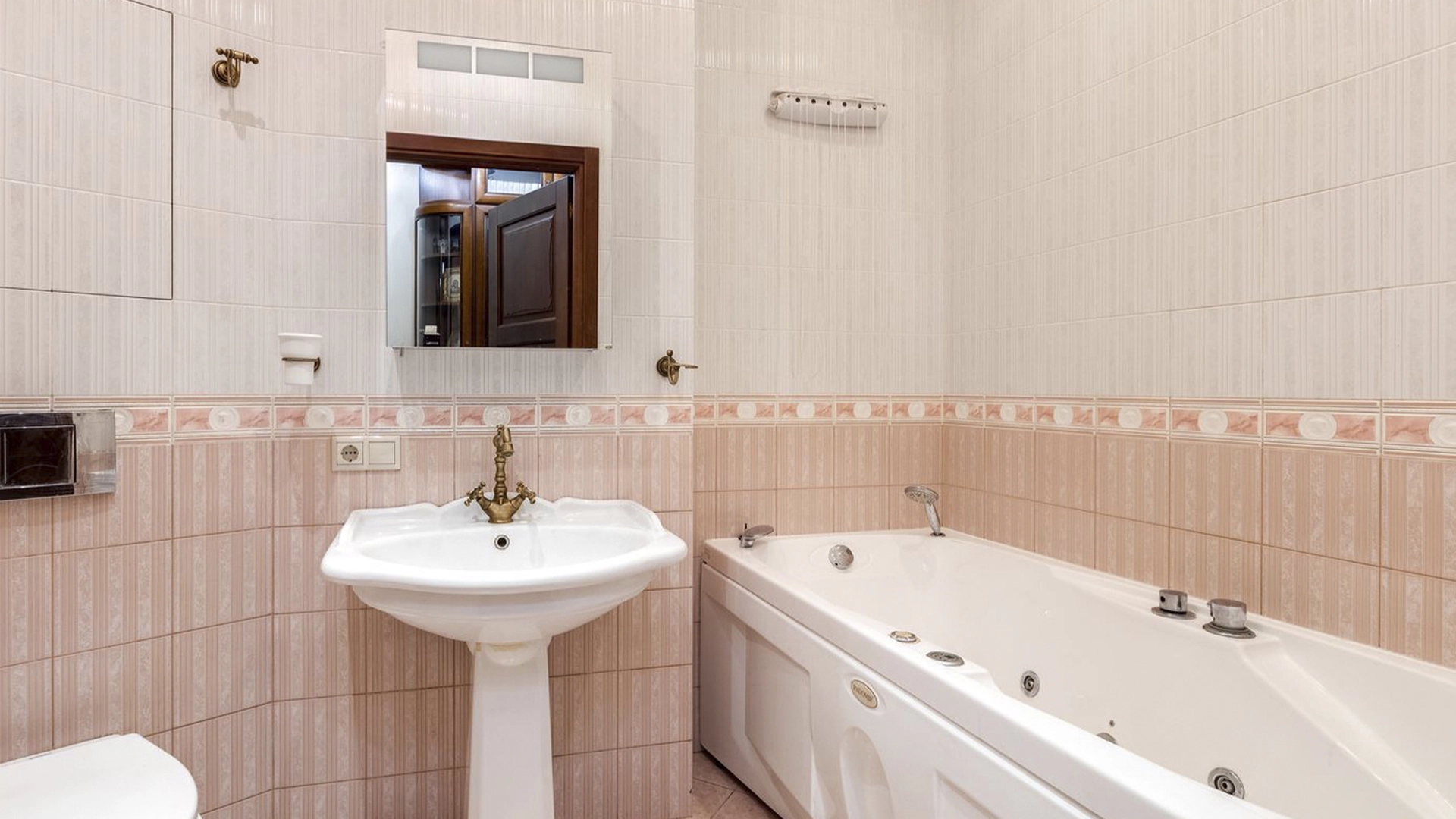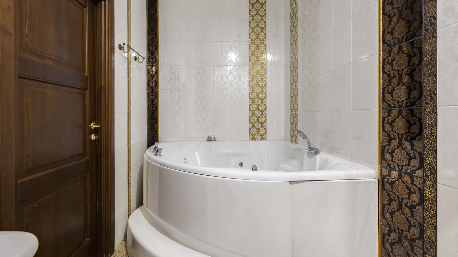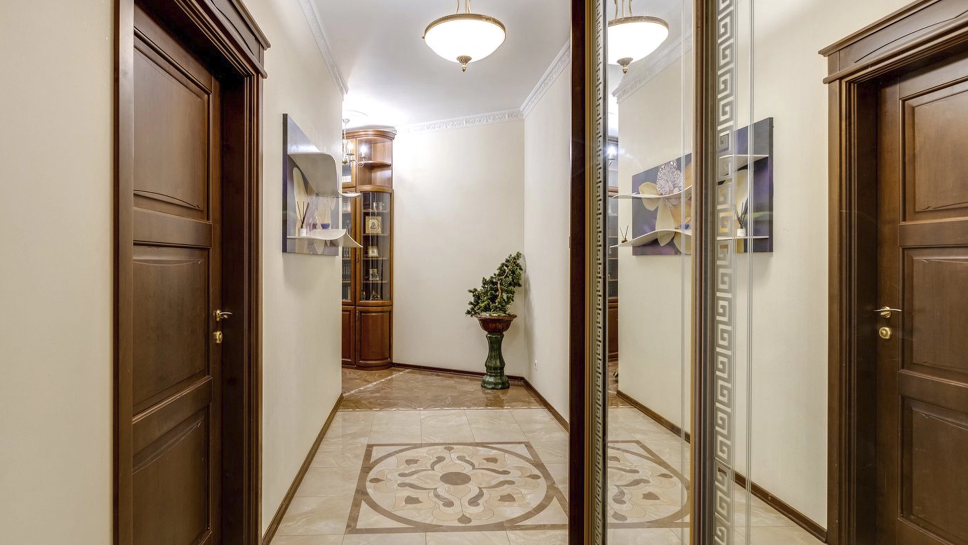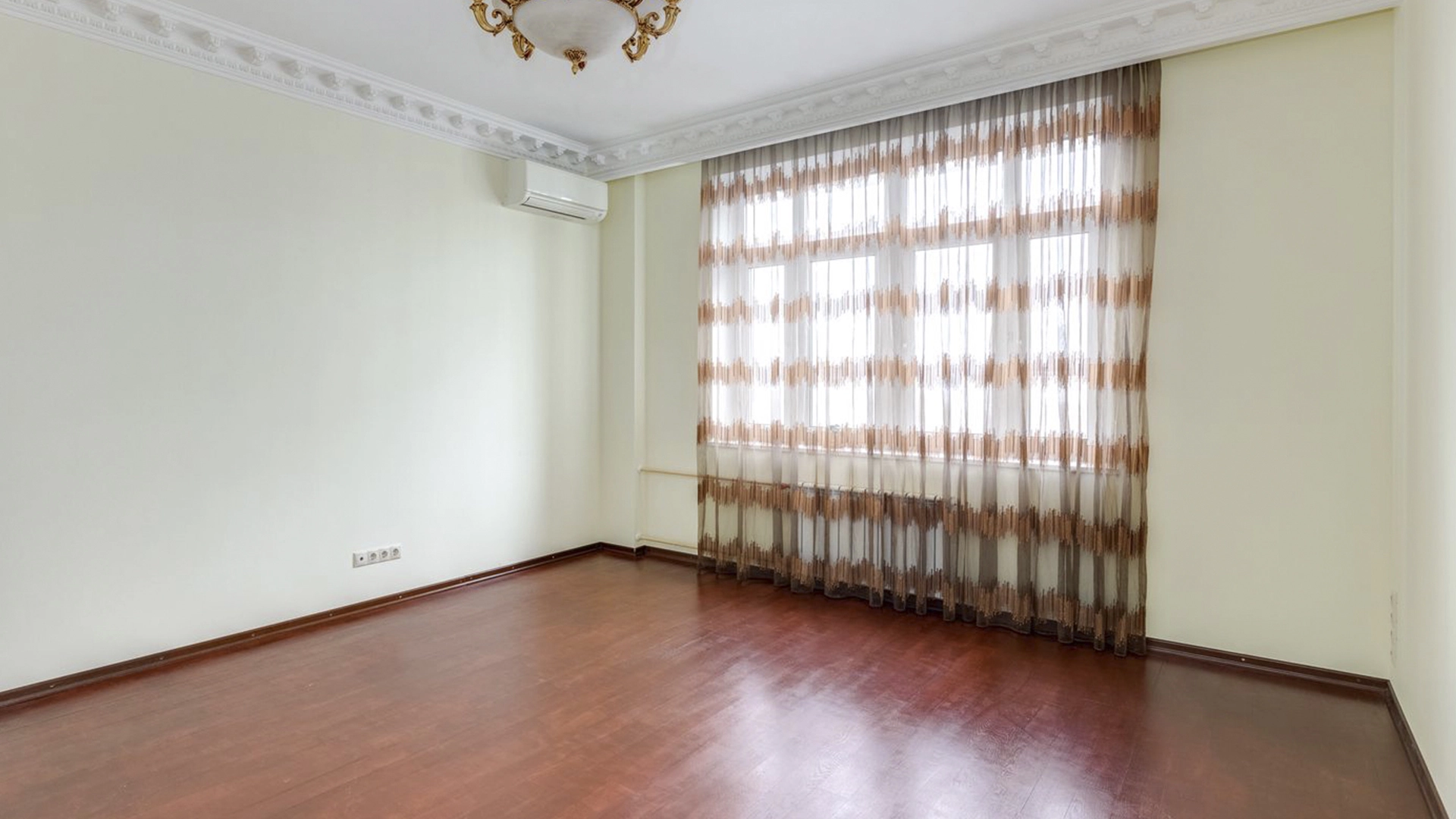 Просторная квартира с 3-мя спальнями в комплексе бизнес-класса «Вектор-Хаус». Квартира общей площадью 144 м² расположена на 9-м этаже. Выполнена авторская отделка в стиле современной классики, на полу уложены паркетная доска и плитка с текстурой мрамора. Стены и потолки украшены лепными деталями и карнизом.