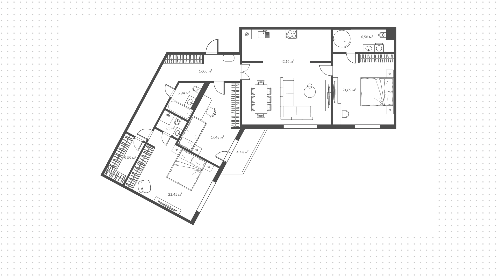 Квартиры c 3 спальнями, 144 м² в ЖК Вектор-Хаус, 9 этаж