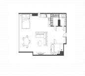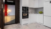 Просторная студия включает зону кухню-гостиной и спальни, ванную комнату, постирочную, гардеробную и холл. Апартамент укомплектован мебелью и бытовой техникой. Из окон открываются виды на город в сторону Парка Победы.
